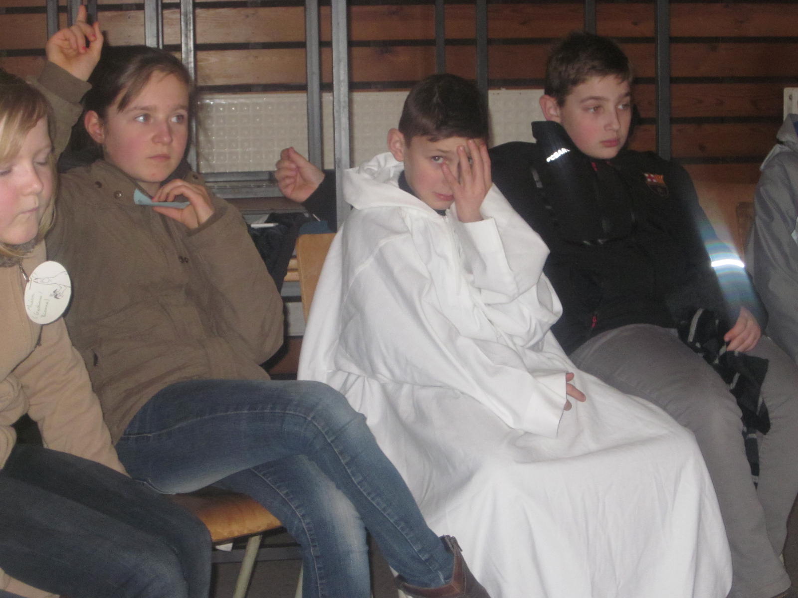 Le matin, les 4 enfants « Nathanaël » (joués par 4 jeunes animateurs) ont présenté dans un sketch le programme de la première partie de la journée. L’histoire de Santiago, un berger d’Andalousie qui cherche un trésor, mais, se rend compte au fur et à mesure de ses rencontres que ce trésor, c’est l’amour de Fatima, a été présentée aux enfants. (Tiré de « l’Alchimiste » de Paulo Coelho).