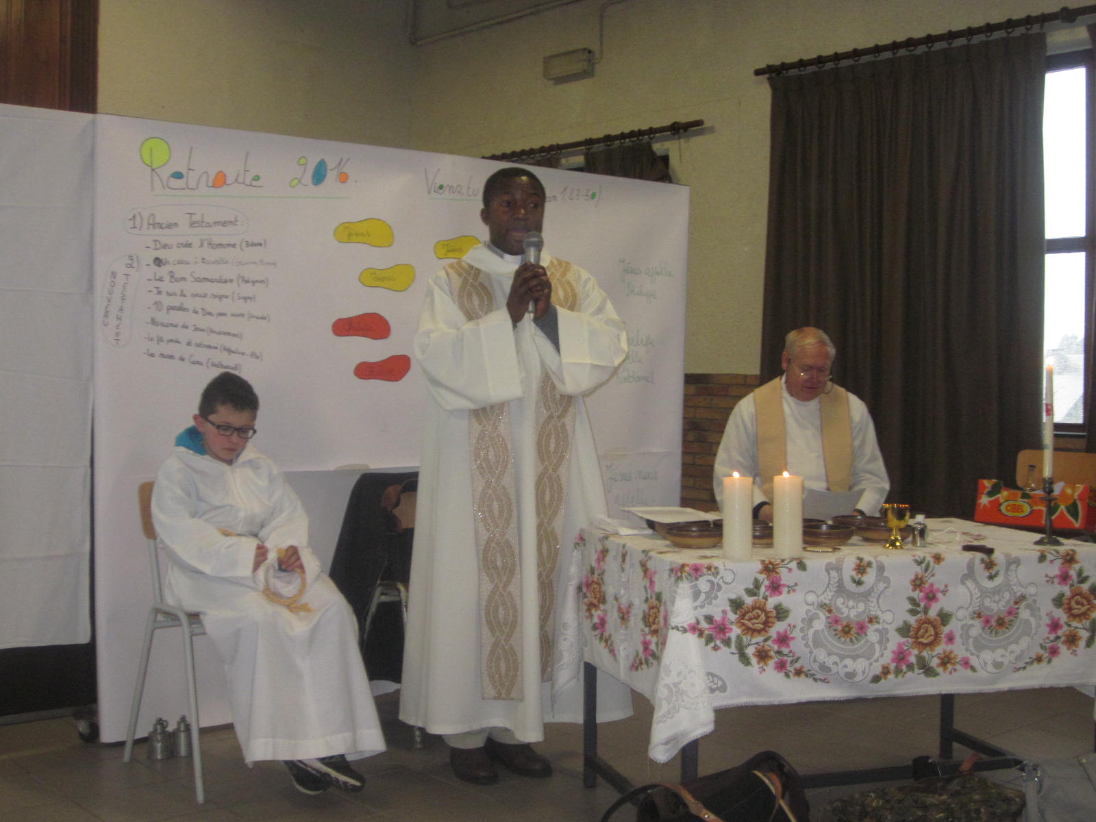 Merci à tous ceux qui ont permis que cette retraite se passe au mieux (équipe cuisine, service aux tables, intendance, organisation, jeunes et moins jeunes animateurs, prêtres, enfants, parents, familles, et le partage d’idées nouvelles, l’enthousiasme, la collaboration, l’attention, le dynamisme etc…).