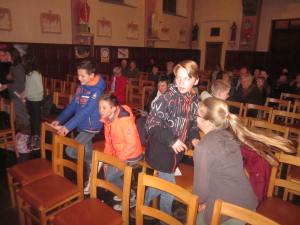Après la rencontre proprement dite sur le thème « Jésus est vivant », l’eucharistie a rassemblé les enfants, leur famille et les paroissiens de Bellefontaine. A la fin de la messe, un des chants phare de la méthode Nathanaël « Tu m’appelles » a donné lieu à une chorégraphie endiablée. Un merci a été adressé envers toutes celles et ceux qui ont permis que tout se passe le mieux possible pendant cette année (prêtres, catés, enfants, parents, chorale, paroissiens, responsables de la salle de Bellefontaine et du patro de Bièvre et Gedinne).