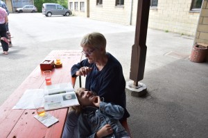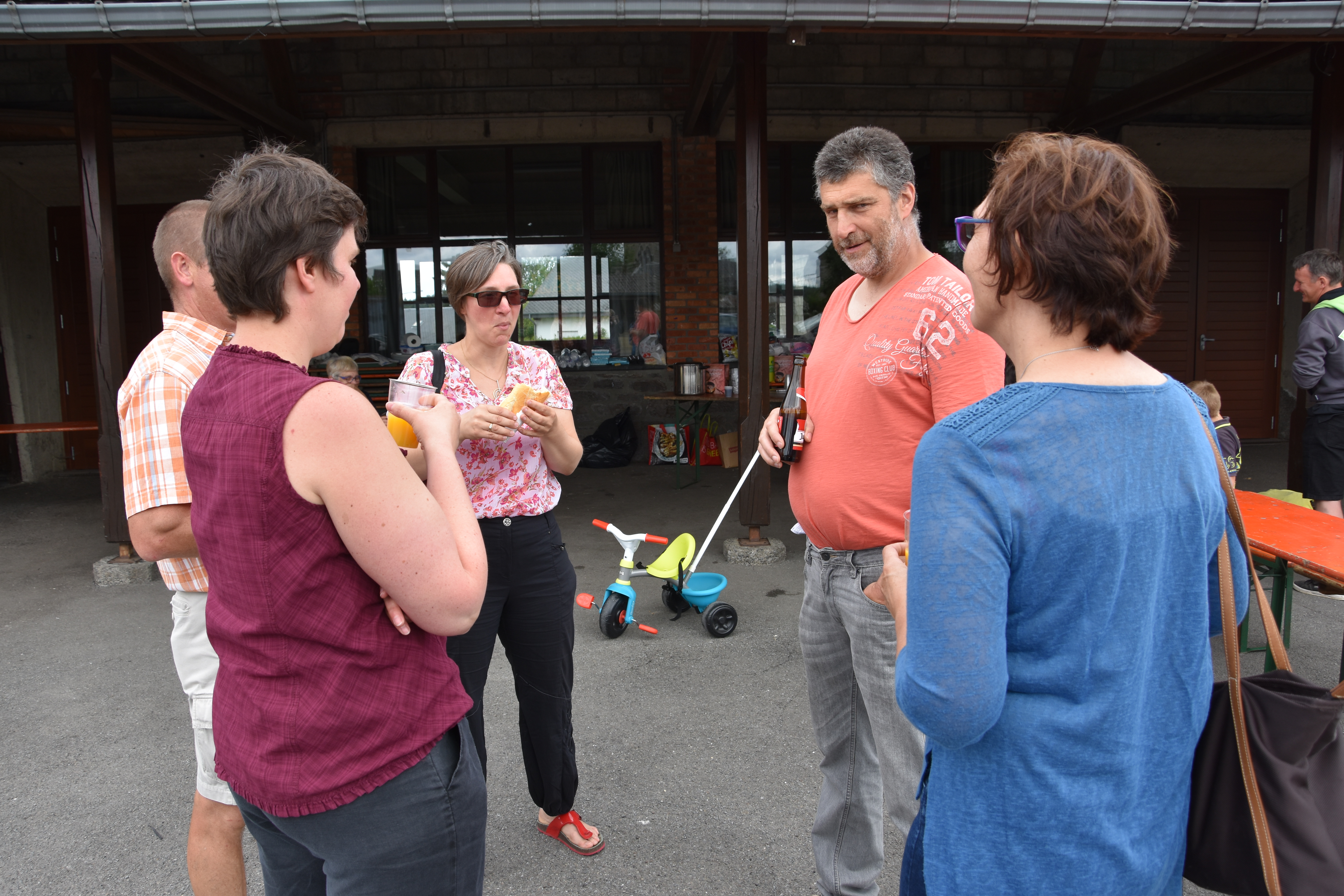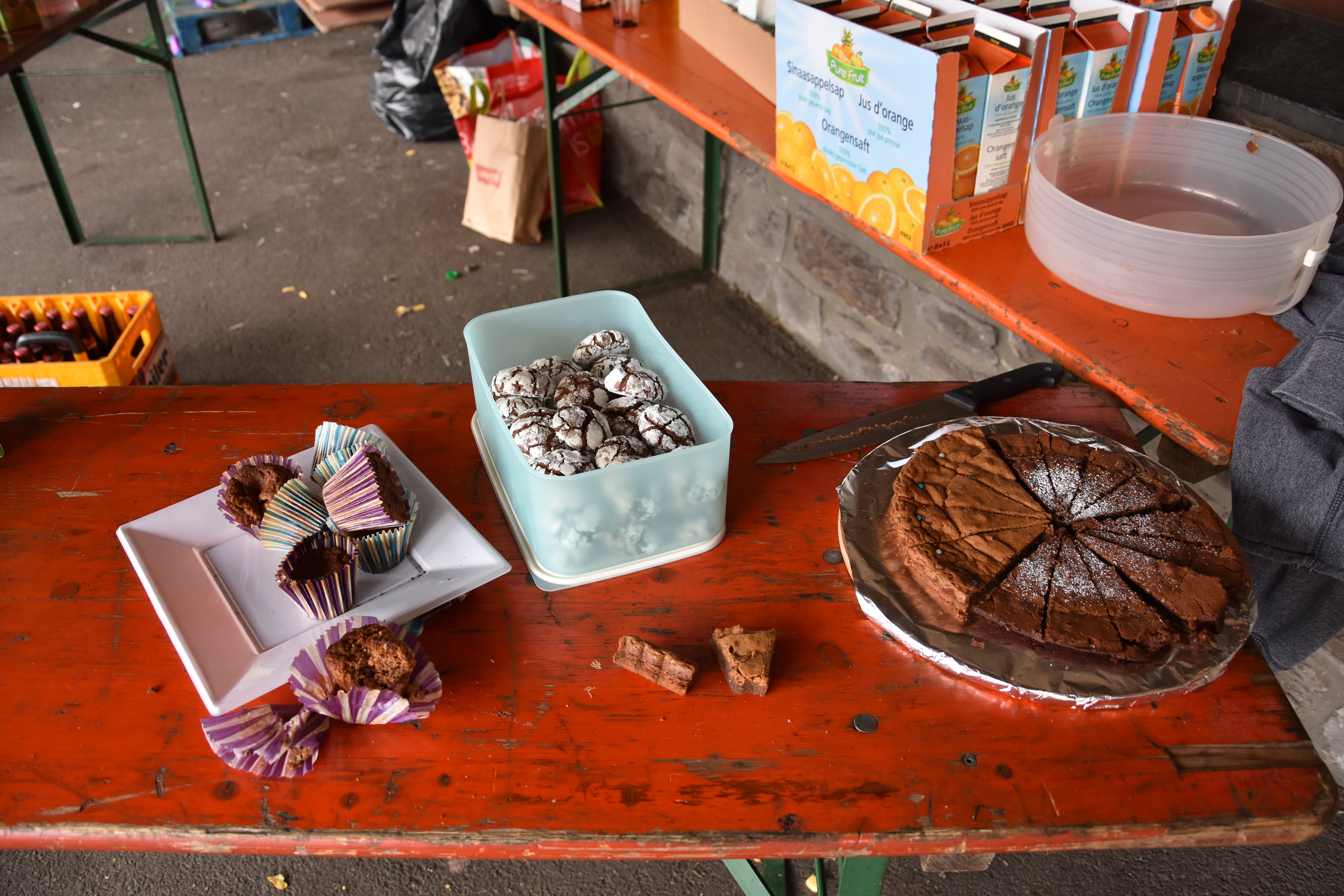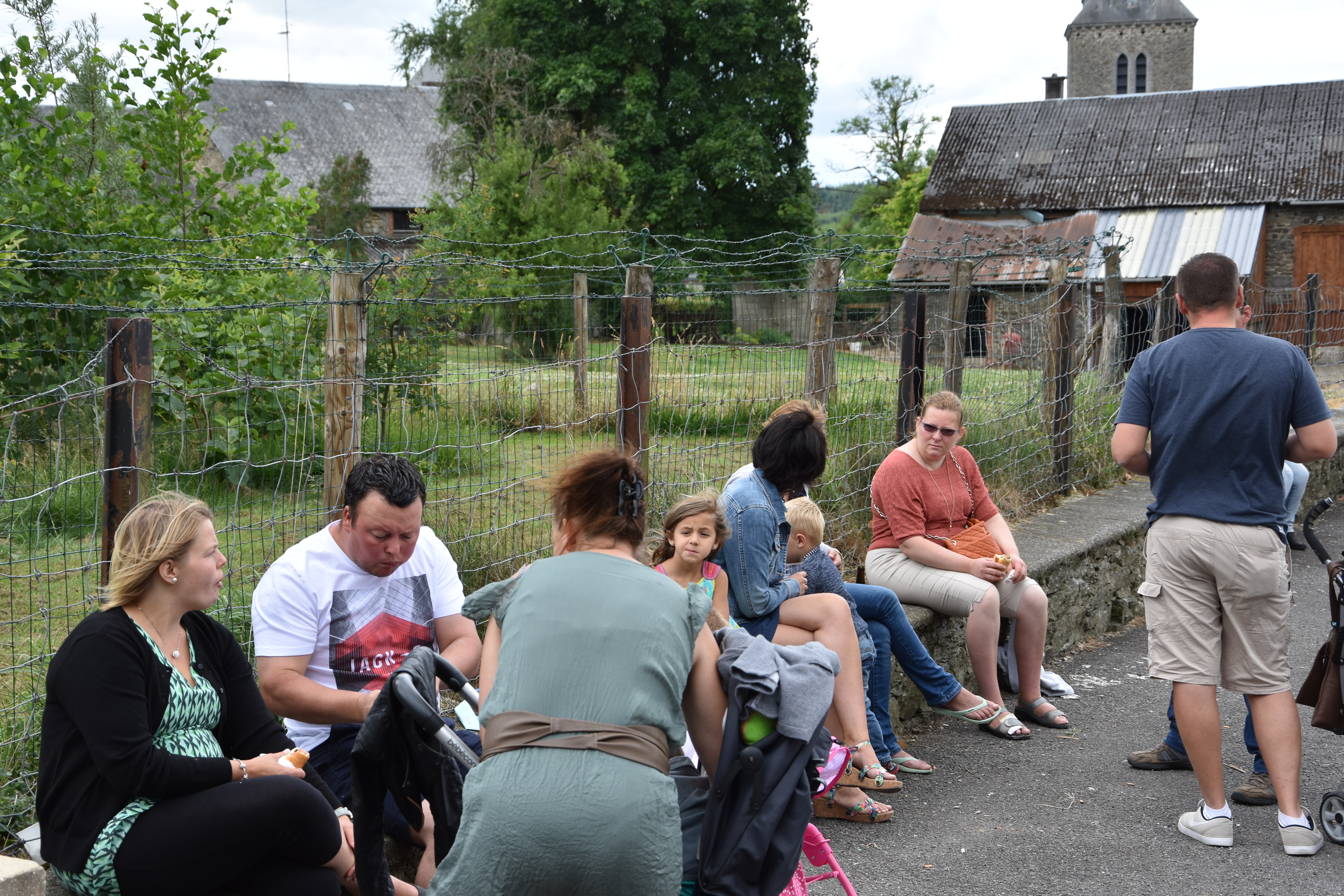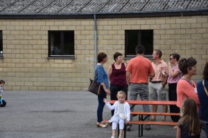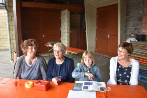 Ensuite, les seize familles (une septantaine de personnes, animateurs compris) se sont retrouvés dans la cour du patro Saint Hubert de Bièvre pour l’apéritif partagé apporté par certaines familles, le pain saucisses et le buffet de desserts partagés apportés par d’autres familles.