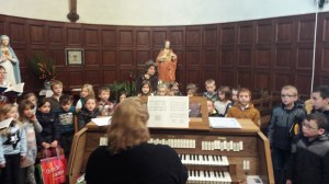 A 11h20, les deux groupes se sont retrouvés à l’église autour de Cathy à l’orgue pour chanter ensemble : « Dis nous à quoi ressemble le Royaume de Dieu ». Pour clôturer en beauté cette chouette matinée, un apéritif a été partagé par les personnes présentes dans le fond de l’église.
