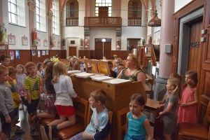 Enfin, une maman et deux enfants ont joué, grâce à des indications discrètes, l’appel de Samuel (Samuel 3, 1-10). C’est Justine, une maman présente, qui a joué la première partie où Anne demande à Dieu d’avoir un enfant et lui promet de le consacrer s’il l’exauce. Et ce sont deux petits garçons, dont le fils de Justine, 😉  qui ont joué Samuel et Eli. Merci à Denise pour avoir fait la voix off de Dieu. 😉 🙂