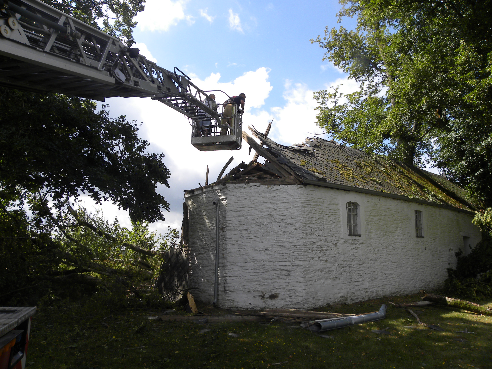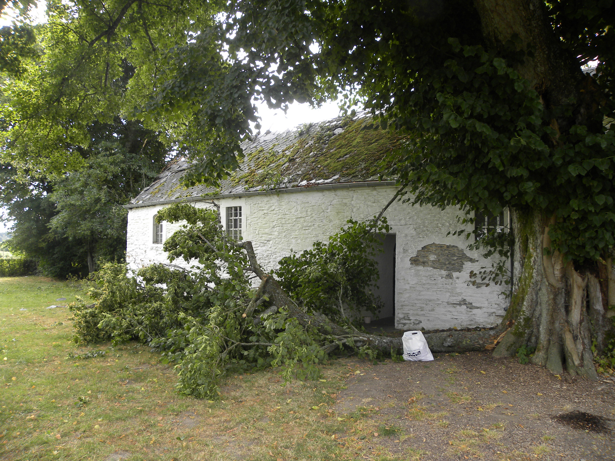 Quand la nature se déchaîne, les conséquences peuvent être graves … La nuit de vendredi à samedi dernier, une mini tornade a provoqué la chute de plusieurs branches d’un tilleul proche de la chapelle Notre Dame du Bon Secours de Oizy (Commune de Bièvre/Doyenné de Gedinne). Vous pouvez vous rendre compte des dégâts grâce aux photos ci-dessus. L’édifice a été bâché par les pompiers. Heureusement, la châsse de Notre Dame du Bon Secours est intacte.
