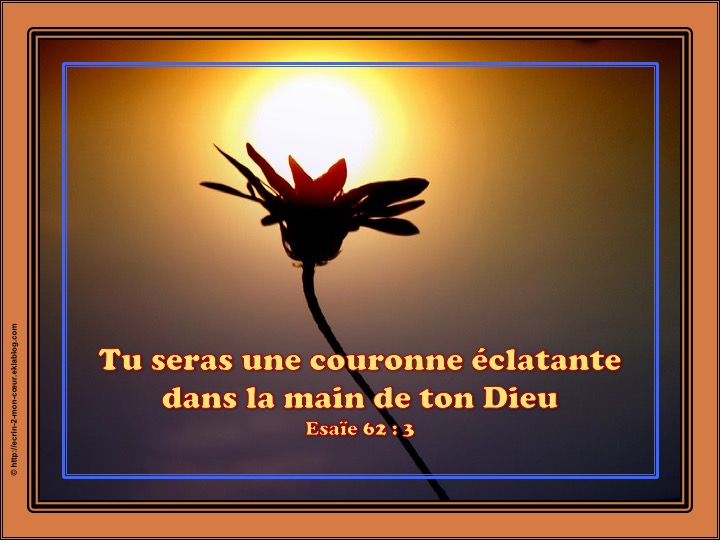 Pour la cause de Sion, je ne me tairai pas, et pour Jérusalem, je n’aurai de cesse que sa justice ne paraisse dans la clarté, et son salut comme une torche qui brûle. Et les nations verront ta justice ; tous les rois verront ta gloire. On te nommera d’un nom nouveau que la bouche du Seigneur dictera. Tu seras une couronne brillante dans la main du Seigneur, un diadème royal entre les doigts de ton Dieu. On ne te dira plus : « Délaissée ! » À ton pays, nul ne dira : « Désolation ! » Toi, tu seras appelée « Ma Préférence », cette terre se nommera « L’Épousée ». Car le Seigneur t’a préférée, et cette terre deviendra « L’Épousée ». Comme un jeune homme épouse une vierge, ton Bâtisseur t’épousera. Comme la jeune mariée fait la joie de son mari, tu seras la joie de ton Dieu. – Parole du Seigneur.