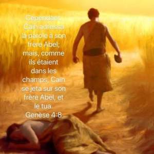 L’homme s’unit à Ève, sa femme : elle devint enceinte, et elle mit au monde Caïn. Elle dit alors : « J’ai acquis un homme avec l’aide du Seigneur ! » Dans la suite, elle mit au monde Abel, frère de Caïn. Abel devint berger, et Caïn cultivait la terre. Au temps fixé, Caïn présenta des produits de la terre en offrande au Seigneur. De son côté, Abel présenta les premiers-nés de son troupeau, en offrant les morceaux les meilleurs. Le Seigneur tourna son regard vers Abel et son offrande, mais vers Caïn et son offrande, il ne le tourna pas. Caïn en fut très irrité et montra un visage abattu. Le Seigneur dit à Caïn : « Pourquoi es-tu irrité, pourquoi ce visage abattu ? Si tu agis bien, ne relèveras-tu pas ton visage ? Mais si tu n’agis pas bien…, le péché est accroupi à ta porte. Il est à l’affût, mais tu dois le dominer. » Caïn dit à son frère Abel : « Sortons dans les champs. » Et, quand ils furent dans la campagne, Caïn se jeta sur son frère Abel et le tua. Le Seigneur dit à Caïn : « Où est ton frère Abel ? » Caïn répondit : « Je ne sais pas. Est-ce que je suis, moi, le gardien de mon frère ? » Le Seigneur reprit : « Qu’as-tu fait ? La voix du sang de ton frère crie de la terre vers moi ! Maintenant donc, sois maudit et chassé loin de cette terre qui a ouvert la bouche pour boire le sang de ton frère, versé par ta main. Tu auras beau cultiver la terre, elle ne produira plus rien pour toi. Tu seras un errant, un vagabond sur la terre. » Alors Caïn dit au Seigneur : « Mon châtiment est trop lourd à porter ! Voici qu’aujourd’hui tu m’as chassé de cette terre. Je dois me cacher loin de toi, je serai un errant, un vagabond sur la terre, et le premier venu qui me trouvera me tuera. » Le Seigneur lui répondit : « Si quelqu’un tue Caïn, Caïn sera vengé sept fois. » Et le Seigneur mit un signe sur Caïn pour le préserver d’être tué par le premier venu qui le trouverait. Adam s’unit encore à sa femme, et elle mit au monde un fils. Elle lui donna le nom de Seth (ce qui veut dire : accordé), car elle dit : « Dieu m’a accordé une nouvelle descendance à la place d’Abel, tué par Caïn. » – Parole du Seigneur.