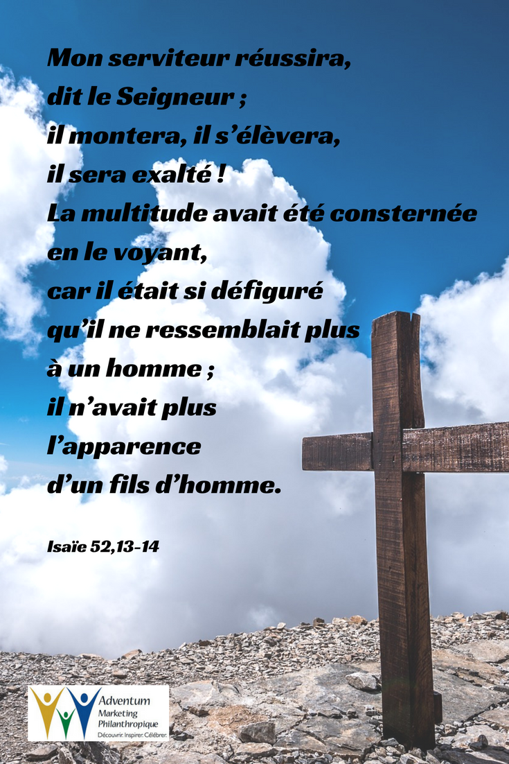 Mon serviteur réussira, dit le Seigneur ; il montera, il s’élèvera, il sera exalté ! La multitude avait été consternée en le voyant, car il était si défiguré qu’il ne ressemblait plus à un homme ; il n’avait plus l’apparence d’un fils d’homme. Il étonnera de même une multitude de nations ; devant lui les rois resteront bouche bée, car ils verront ce que, jamais, on ne leur avait dit, ils découvriront ce dont ils n’avaient jamais entendu parler. Qui aurait cru ce que nous avons entendu ? Le bras puissant du Seigneur, à qui s’est-il révélé ? Devant lui, le serviteur a poussé comme une plante chétive, une racine dans une terre aride ; il était sans apparence ni beauté qui attire nos regards, son aspect n’avait rien pour nous plaire. Méprisé, abandonné des hommes, homme de douleurs, familier de la souffrance, il était pareil à celui devant qui on se voile la face ; et nous l’avons méprisé, compté pour rien. En fait, c’étaient nos souffrances qu’il portait, nos douleurs dont il était chargé. Et nous, nous pensions qu’il était frappé, meurtri par Dieu, humilié. Or, c’est à cause de nos révoltes qu’il a été transpercé, à cause de nos fautes qu’il a été broyé. Le châtiment qui nous donne la paix a pesé sur lui : par ses blessures, nous sommes guéris. Nous étions tous errants comme des brebis, chacun suivait son propre chemin. Mais le Seigneur a fait retomber sur lui nos fautes à nous tous. Maltraité, il s’humilie, il n’ouvre pas la bouche : comme un agneau conduit à l’abattoir, comme une brebis muette devant les tondeurs, il n’ouvre pas la bouche. Arrêté, puis jugé, il a été supprimé. Qui donc s’est inquiété de son sort ? Il a été retranché de la terre des vivants, frappé à mort pour les révoltes de son peuple. On a placé sa tombe avec les méchants, son tombeau avec les riches ; et pourtant il n’avait pas commis de violence, on ne trouvait pas de tromperie dans sa bouche. Broyé par la souffrance, il a plu au Seigneur. S’il remet sa vie en sacrifice de réparation, il verra une descendance, il prolongera ses jours : par lui, ce qui plaît au Seigneur réussira. Par suite de ses tourments, il verra la lumière, la connaissance le comblera. Le juste, mon serviteur, justifiera les multitudes, il se chargera de leurs fautes. C’est pourquoi, parmi les grands, je lui donnerai sa part, avec les puissants il partagera le butin, car il s’est dépouillé lui-même jusqu’à la mort, et il a été compté avec les pécheurs, alors qu’il portait le péché des multitudes et qu’il intercédait pour les pécheurs. – Parole du Seigneur.