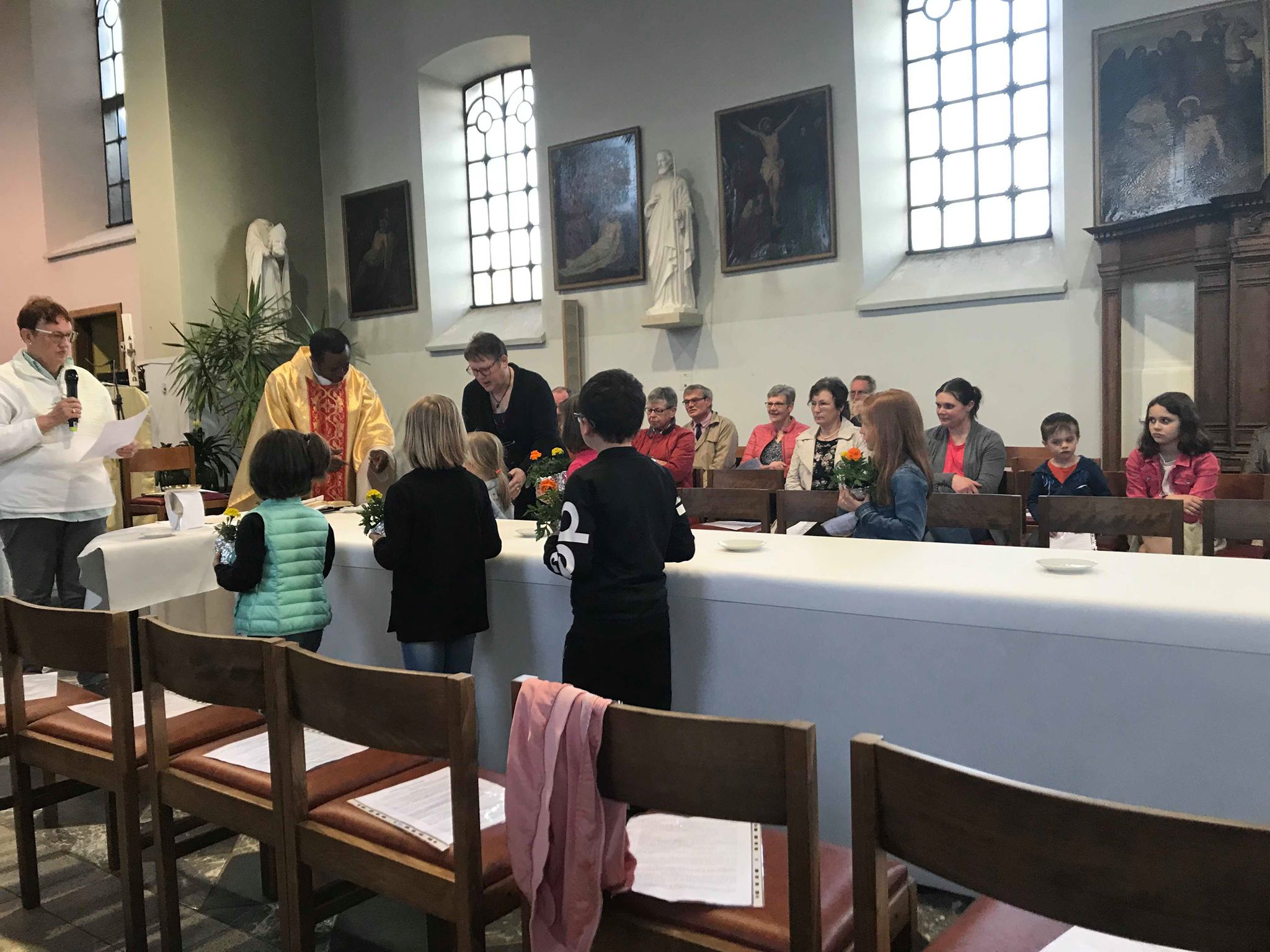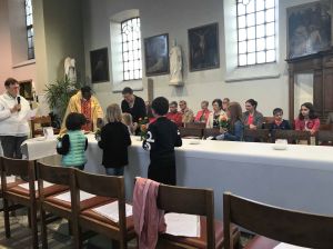 Les enfants du secteur de Bièvre/Daverdisse autour de la table du Jeudi Saint.
