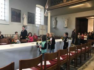 Les enfants du secteur de Bièvre/Daverdisse autour de la table du Jeudi Saint.