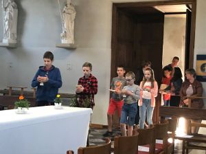 Les enfants du secteur de Bièvre/Daverdisse autour de la table du Jeudi Saint.