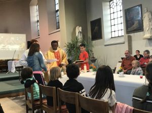 Les enfants du secteur de Bièvre/Daverdisse autour de la table du Jeudi Saint.