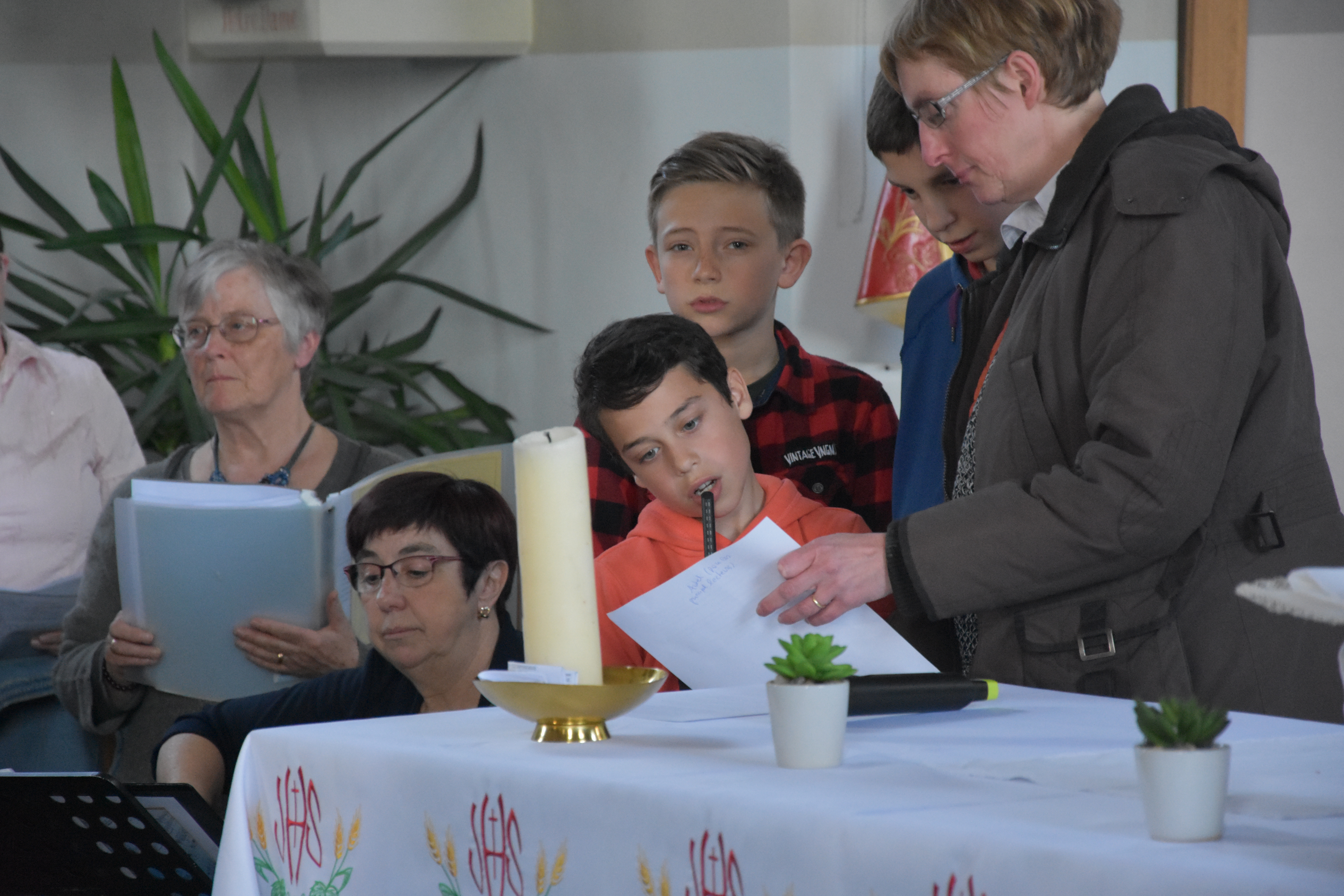 Les enfants du secteur de Bièvre/Daverdisse autour de la table du Jeudi Saint.