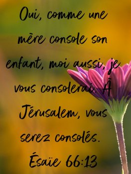 Réjouissez-vous avec Jérusalem ! Exultez en elle, vous tous qui l’aimez ! Avec elle, soyez pleins d’allégresse, vous tous qui la pleuriez ! Alors, vous serez nourris de son lait, rassasiés de ses consolations ; alors, vous goûterez avec délices à l’abondance de sa gloire. Car le Seigneur le déclare : « Voici que je dirige vers elle la paix comme un fleuve et, comme un torrent qui déborde, la gloire des nations. » Vous serez nourris, portés sur la hanche ; vous serez choyés sur ses genoux. Comme un enfant que sa mère console, ainsi, je vous consolerai. Oui, dans Jérusalem, vous serez consolés. Vous verrez, votre cœur sera dans l’allégresse ; et vos os revivront comme l’herbe reverdit. Le Seigneur fera connaître sa puissance à ses serviteurs. – Parole du Seigneur.