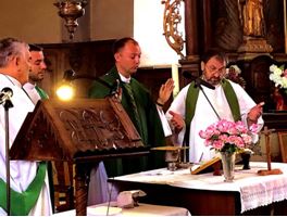 Ce dimanche, 2 septembre à Rochehaut, nous avons pu assister, dans une ambiance très accueillante, l’installation de l’abbé Krzysztof Brzostowsky (NDLR : à droite sur la photo ; à l’autel avec lui, les abbés Irénée, Santiago et le diacre, Xavier) dans le secteur de Bouillon.