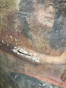 – Fixation générale de la couche picturale avec protection au papier de soie.