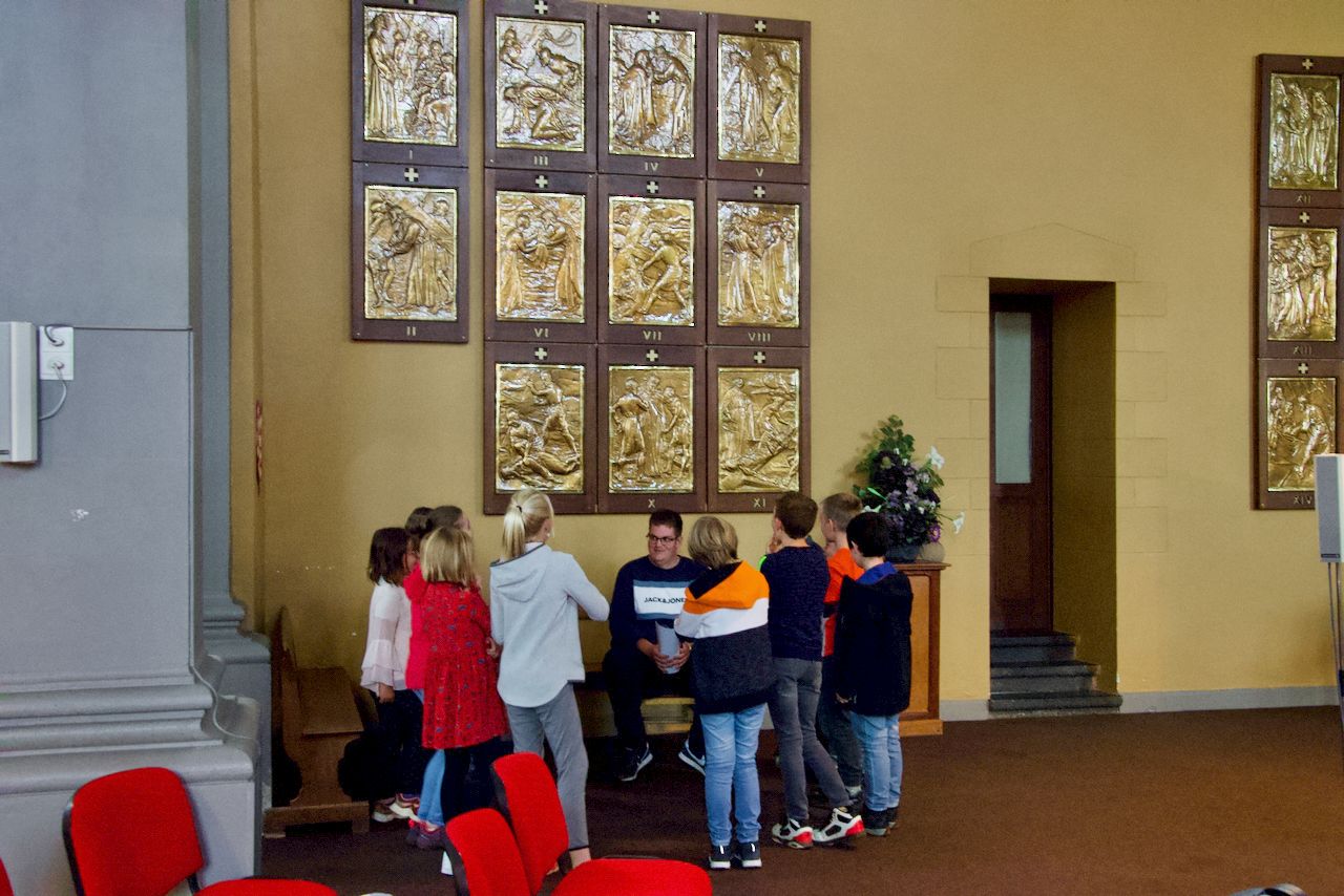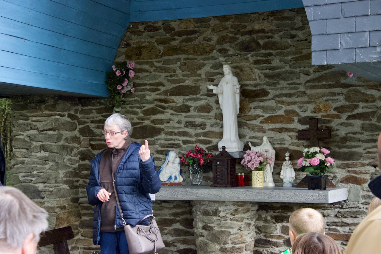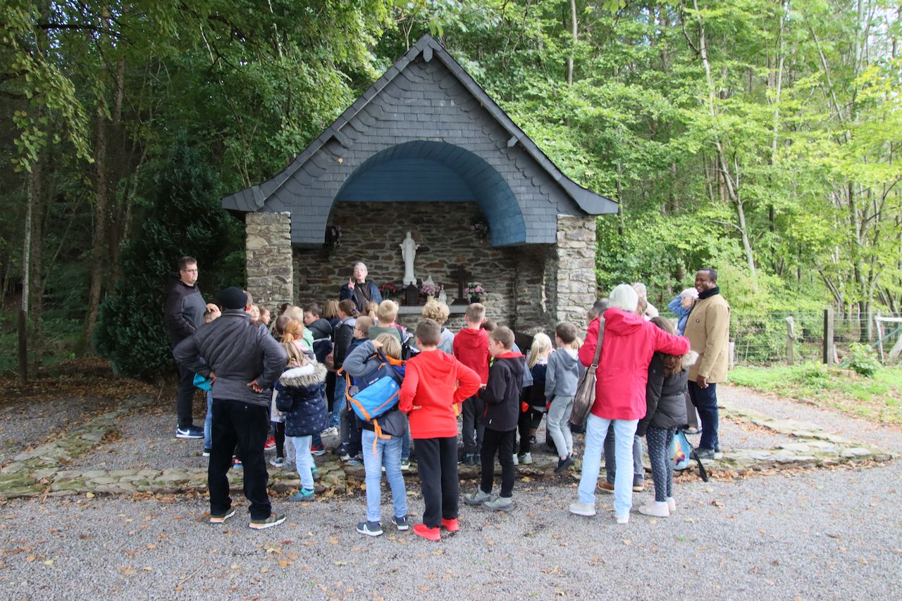 Le mercredi 28 septembre, tous les enfants du doyenné de Gedinne qui sont en cheminement de confirmation se sont réunis à Porcheresse pour vivre une après-midi de rentrée de caté. Voici les différentes activités vécues : répétition des chants de la messe – histoire des apparitions de Beauraing raconté avec l’appui d’un diaporama – jeu de « Fort Boyard » revisité en plusieurs étapes (réponses à des questions pour obtenir 5 clés par équipe, épreuves pour récolter des lettres qui, mises dans le bon ordre, donnaient le mot « COMMUNUAUTE », découverte du trésor avec le Père Fouras – chaque groupe a ainsi reçu un vitrail-bougie pour prier lors des rencontres de caté-). Nous avons ensuite vécu un mini-pèlerinage vers la chapelle Notre Dame de Beauraing située dans le village, partagé un temps de prière. Fin d’après-midi, une eucharistie participative (procession d’entrée avec les vitraux-bougies, lectures diverses, reconstitution du mot « communauté » sur l’autel), a rassemblé tout le monde pour clôturer cette belle après-midi de rentrée. L’abbé Casmir a béni les enfants et leur mallette à l’occasion de cette double rentrée : scolaire et de caté.