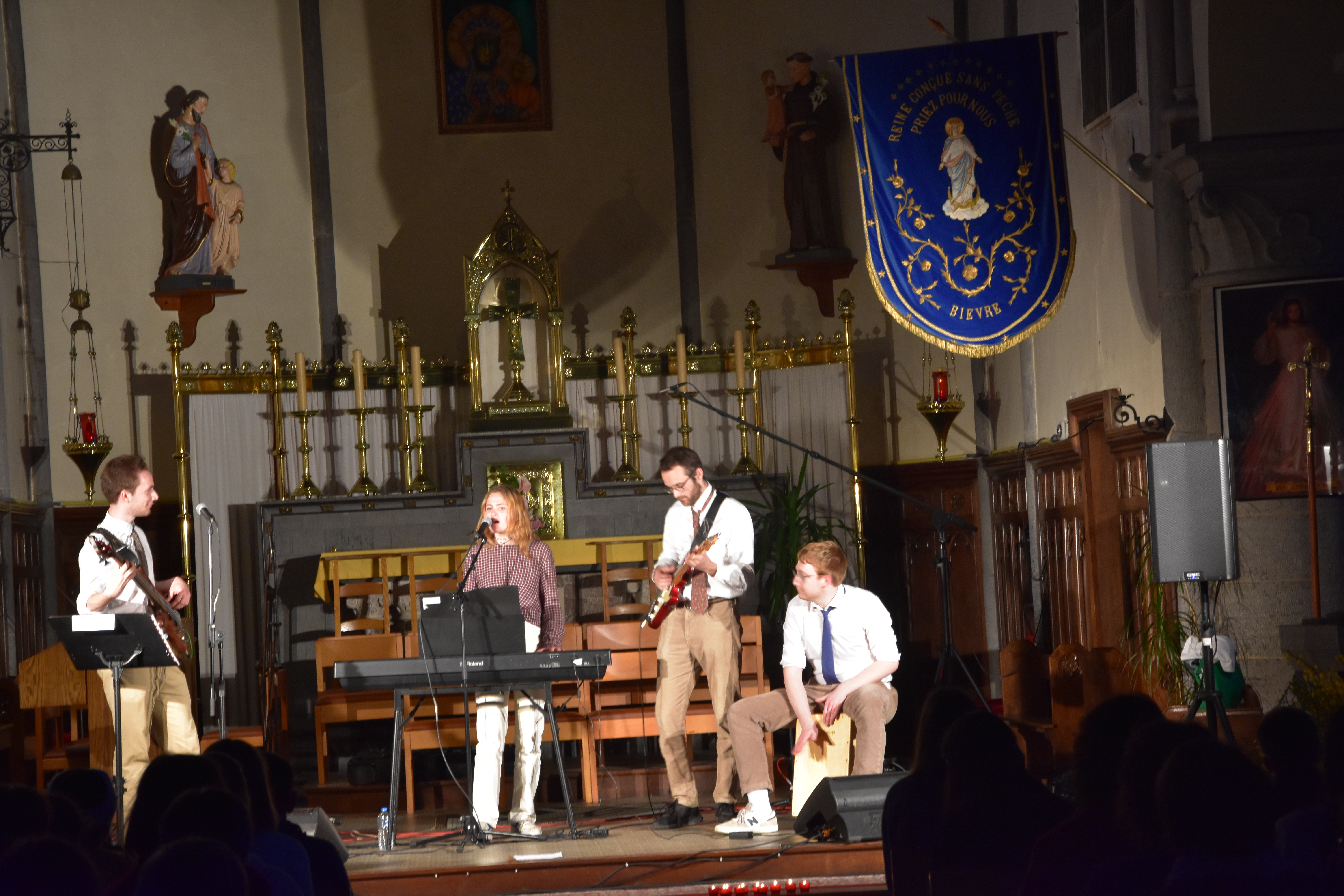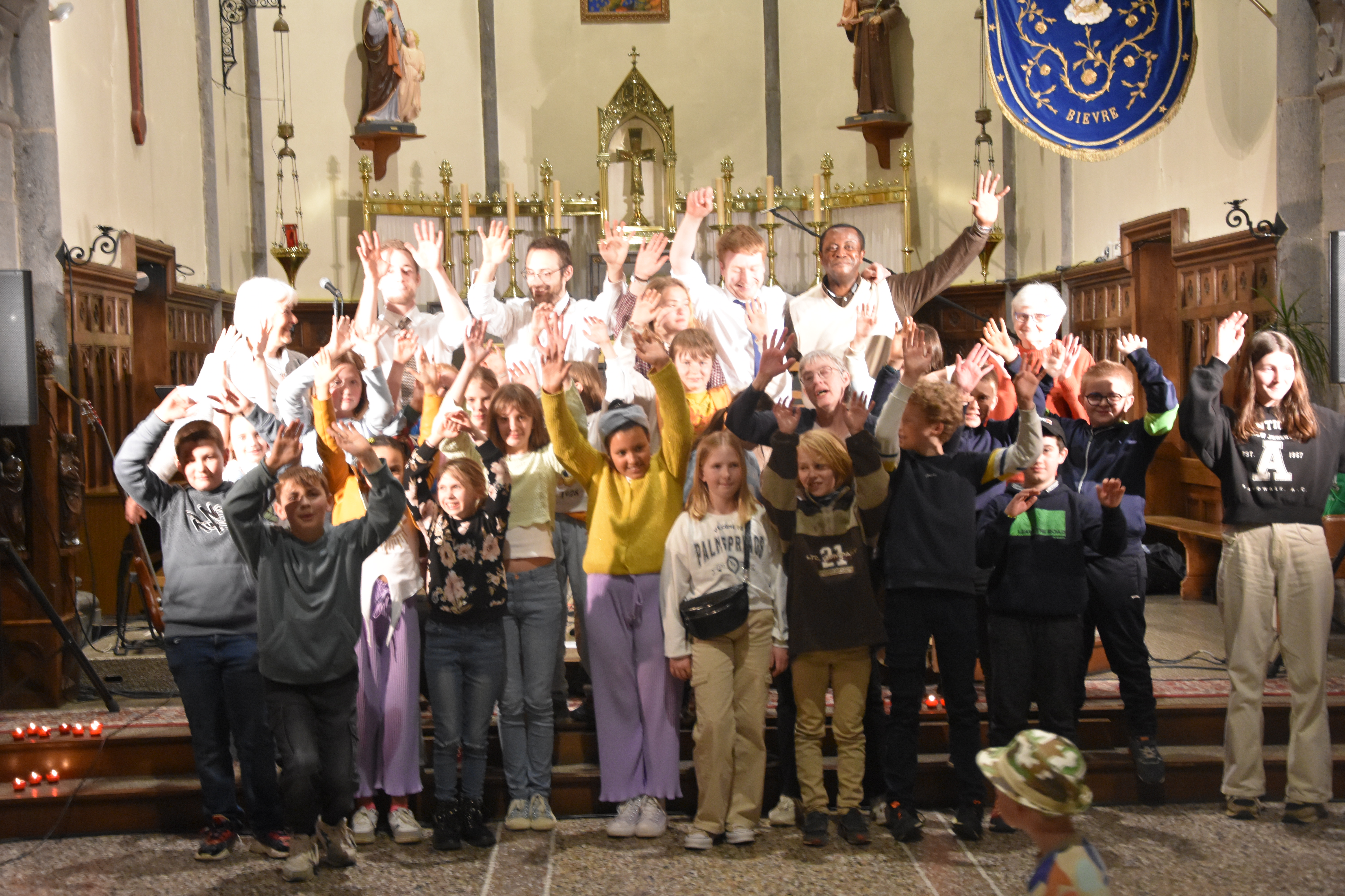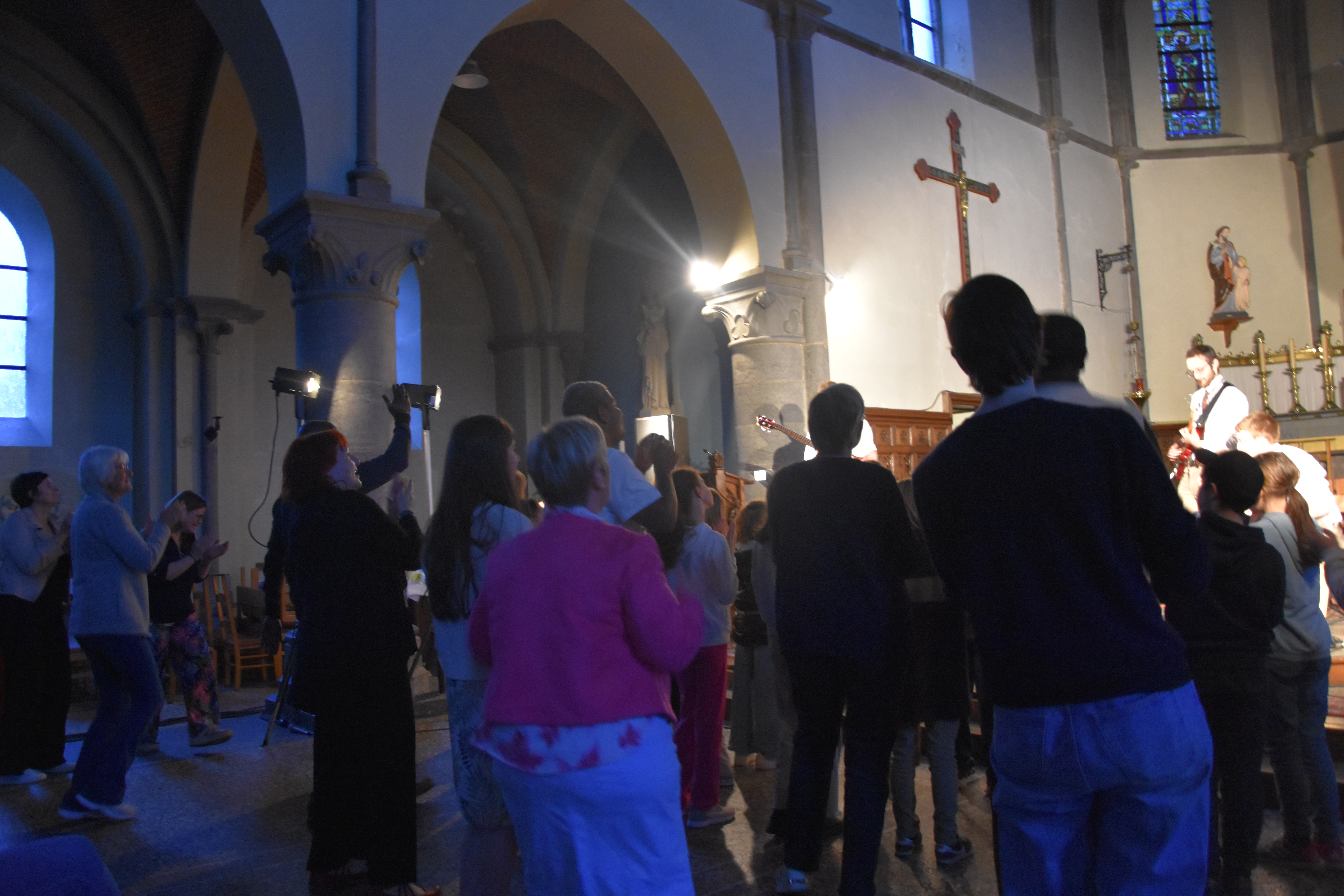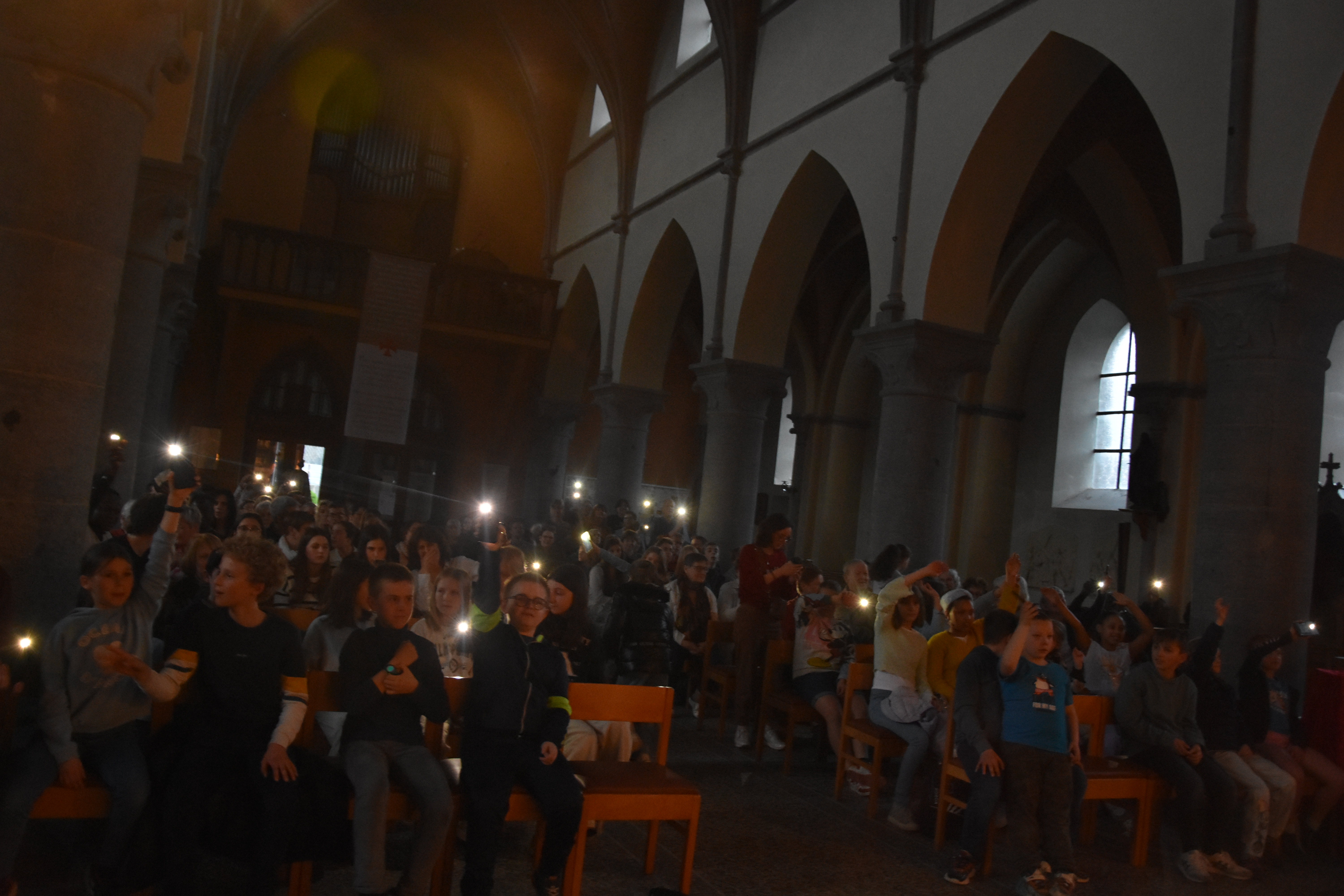 Merci à tous les catés de confirmation et plus particulièrement Claude pour l’idée de départ, les prêtres de notre doyenné, plus particulièrement à David pour l’acheminement et retour du matériel, et à Johan Jacquet pour l’organisation en amont et la technique pendant le concert.
