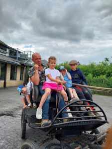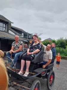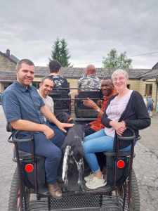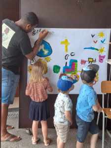 Lors du barbecue du caté, nous avons passé un merveilleux moment accompagné d’une animation musicale sympathique. Partager un repas auberge espagnole était une belle idée pour rendre ce moment convivial. Les enfants ont bien profité tous ensemble avec un temps ensoleillé. Les activités surprises prévues ont connu un beau succès. En effet, ils ont pu s’essayer à la peinture acrylique pour réaliser une jolie fresque (thème de la Création ndlr), ce qui a également plu aux adultes.  Mais ce que nous avons beaucoup apprécié, c’était la promenade en calèche tirée par deux magnifiques chevaux de trait. Petits et grands ont pu profiter de la balade. Nous en garderons un très bon souvenir, merci à vous ! Marie Laure et sa famille