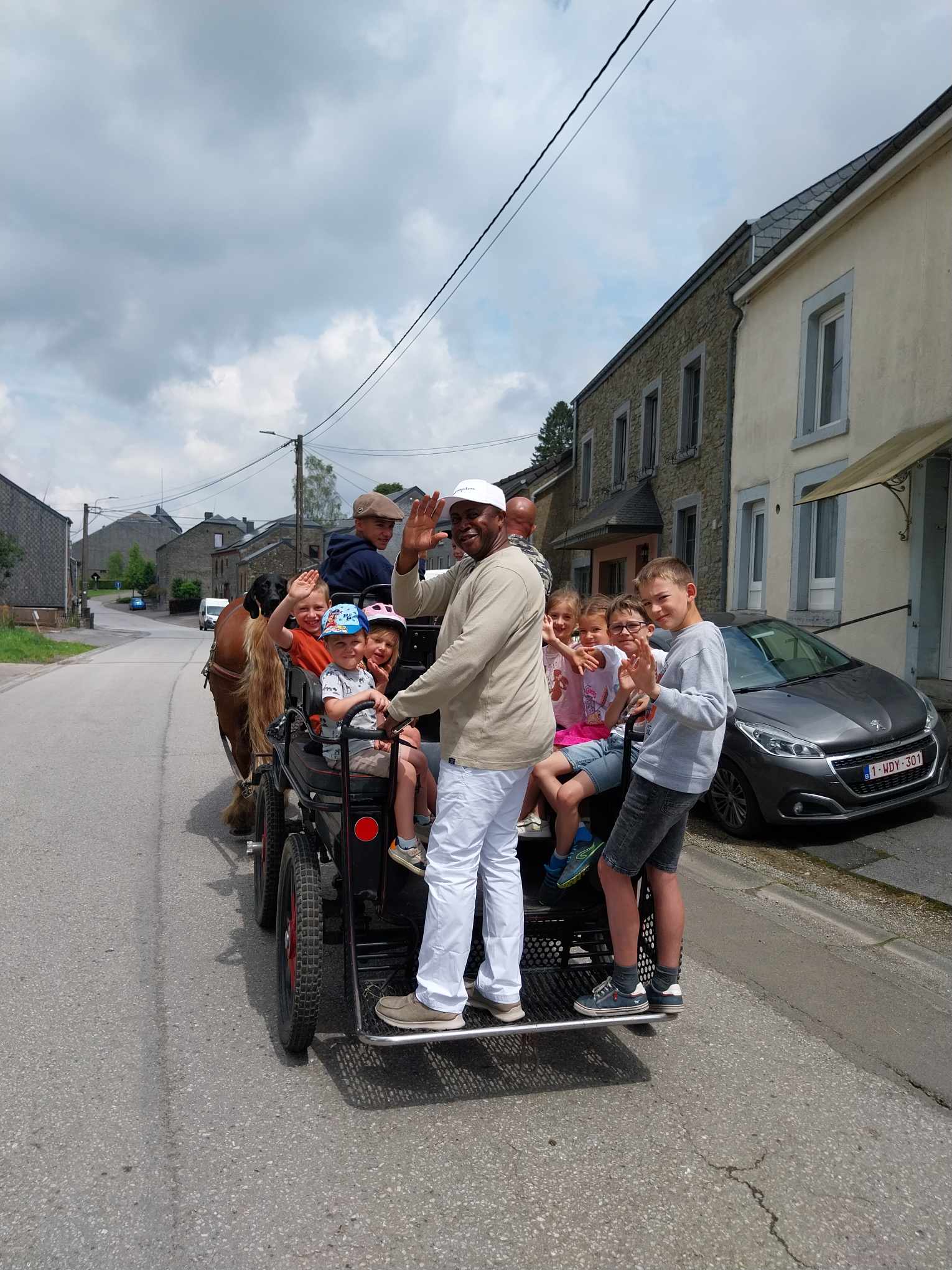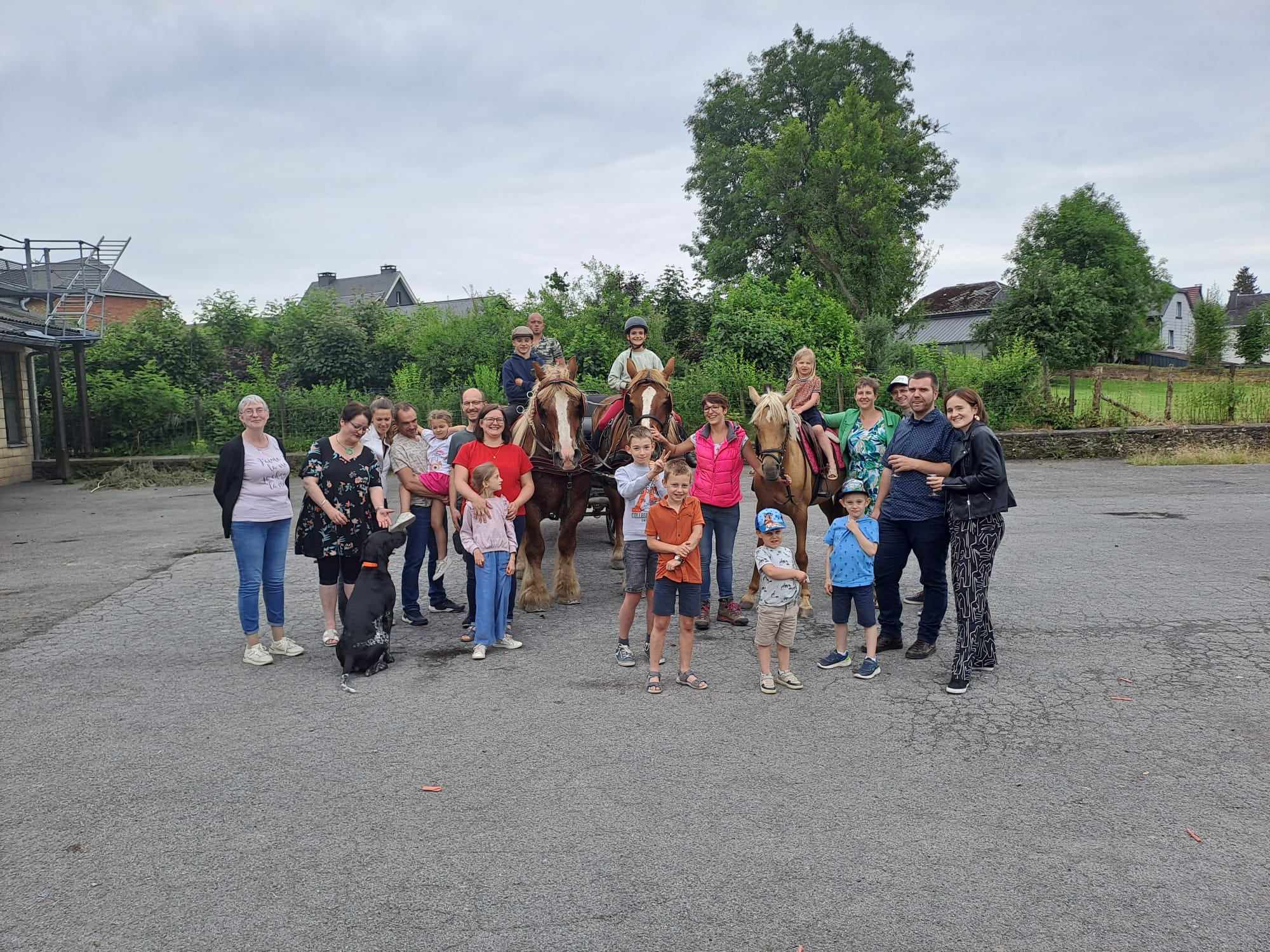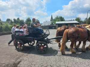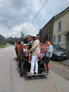 Merci à tous les enfants et parents présents, à Cindy et sa famille pour les promenades en calèche avec leurs deux magnifiques chevaux : Léon et Vainqueur, aux catés qui ont aidé, aux prêtres présents, à Alonzo pour l’animation musicale, aux responsables du patro et aux photographes. Véro