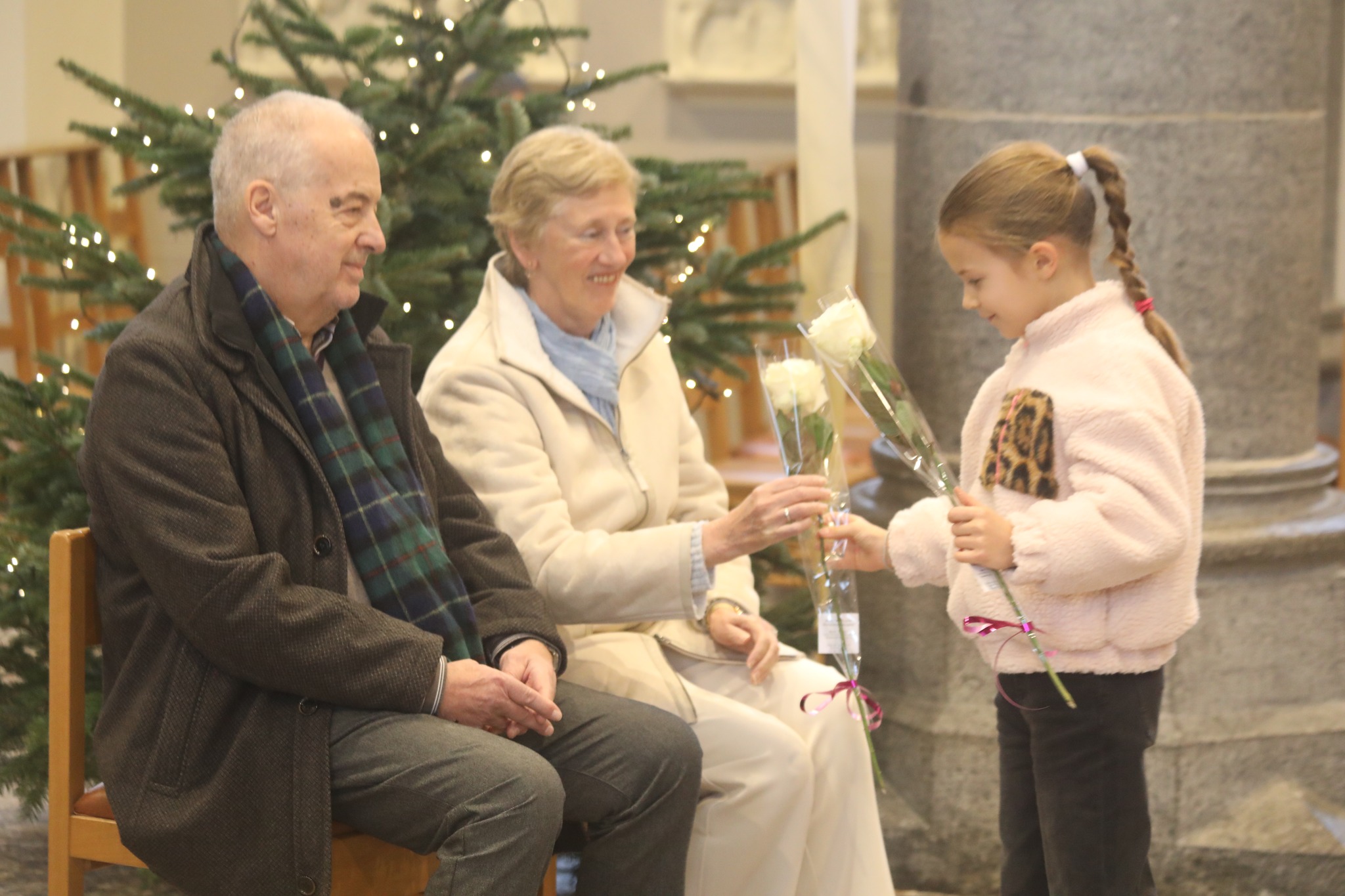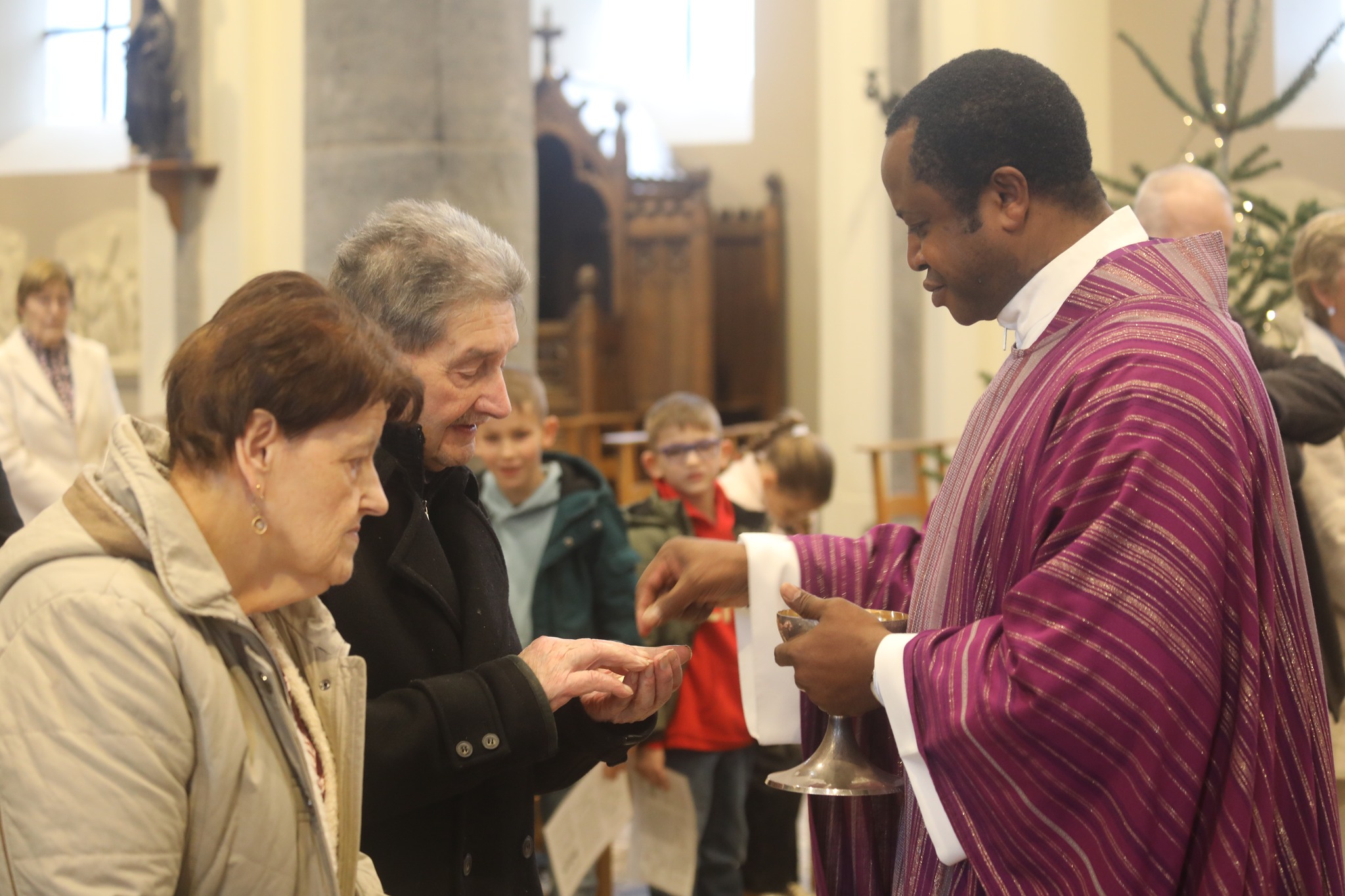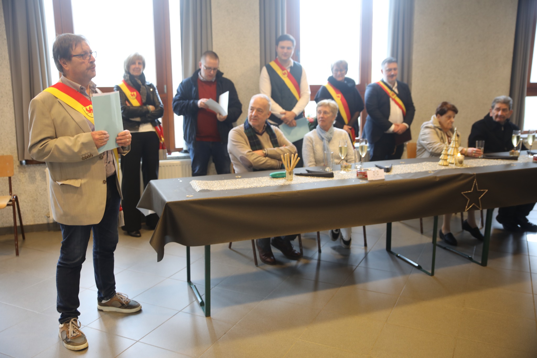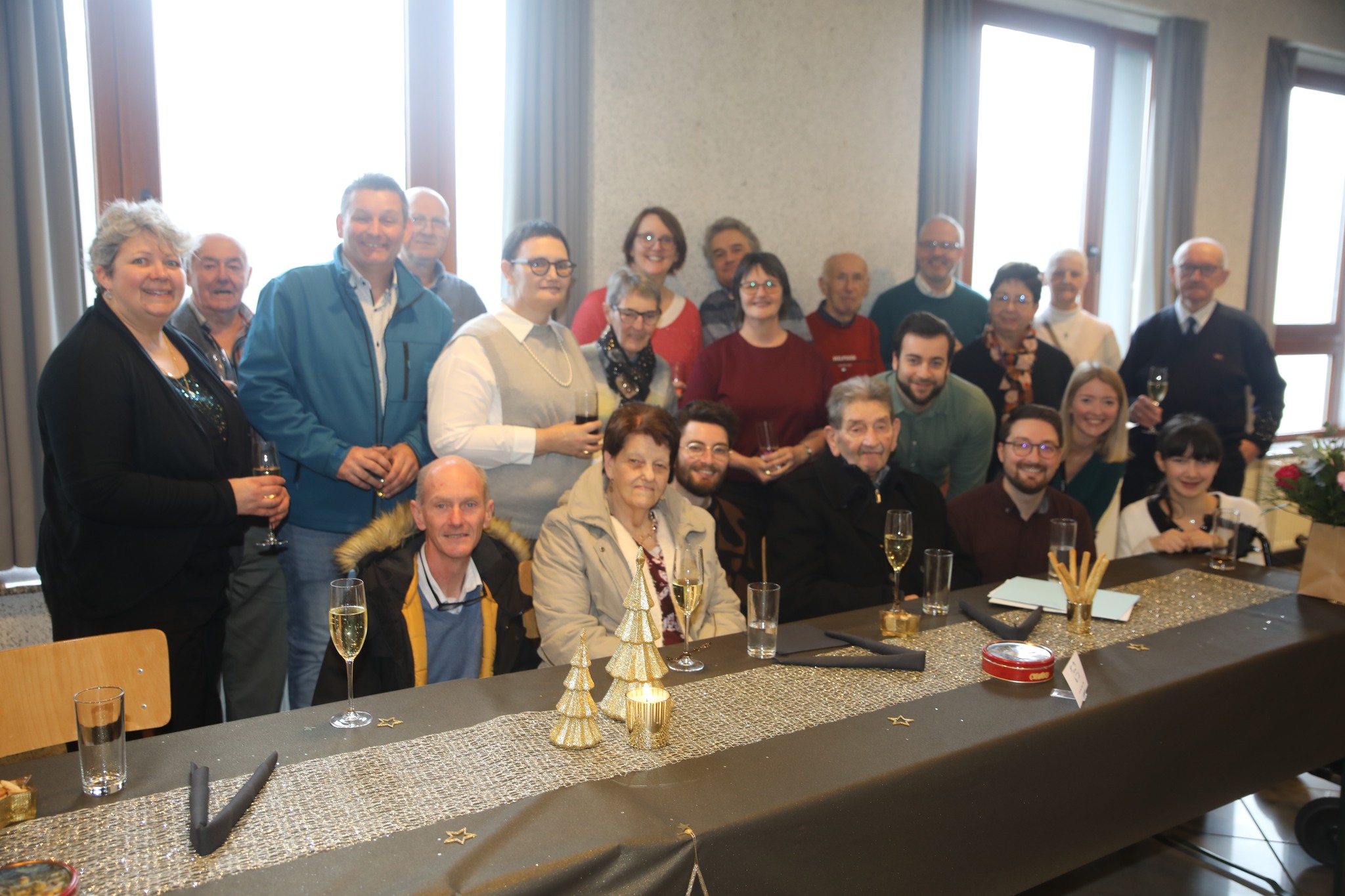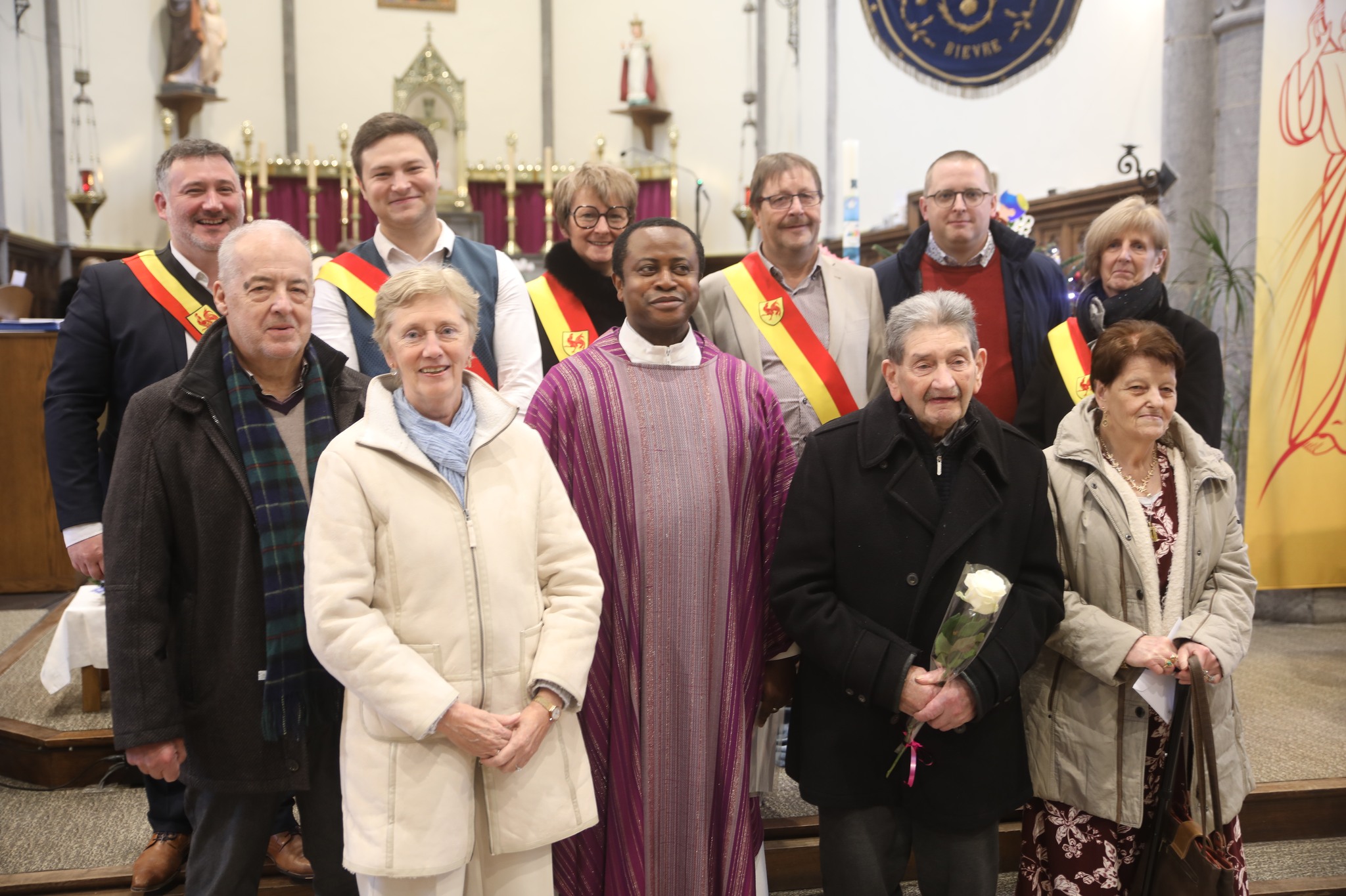 Le dimanche 14 décembre, deux couples jubilaires ont été fêtés et félicités lors de différents moments. Tout d’abord, une eucharistie a été célébrée par l’abbé Casmir Nnubia, à l’église de Bièvre en présence des autorités communales et des enfants du caté de la 1ère communion. L’abbé Casmir a béni les couples, remis un cadeau et Olly, au nom de ses condisciples, leur a offert une rose. Ensuite, à la salle de Monceau, en présence des familles des couples jubilaires, Monsieur Thierry Léonet, échevin, a lu les discours de circonstance teintés d’humour, des cadeaux ont été remis par les membres du collège et conseil communal et le partage du verre de l’amitié.