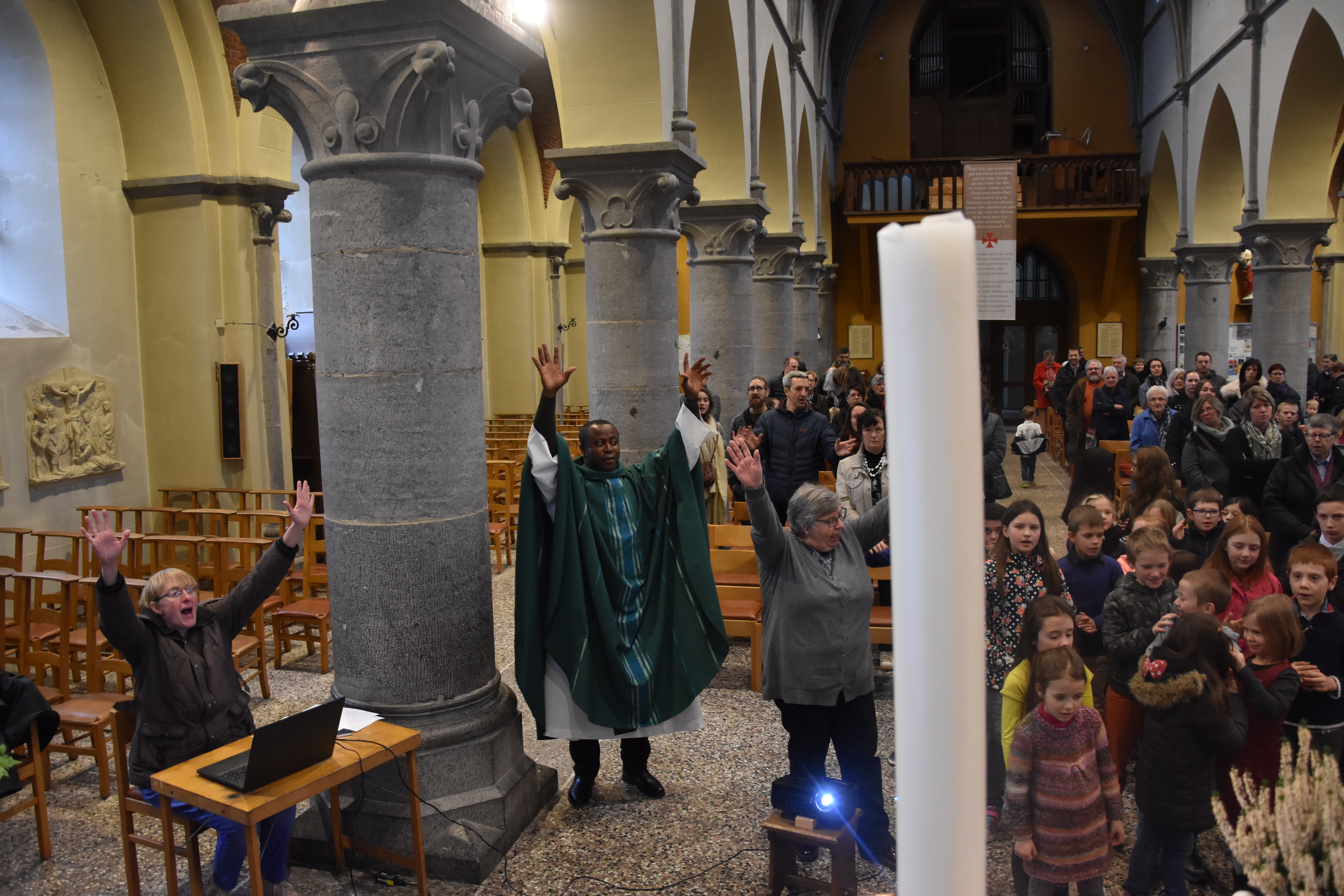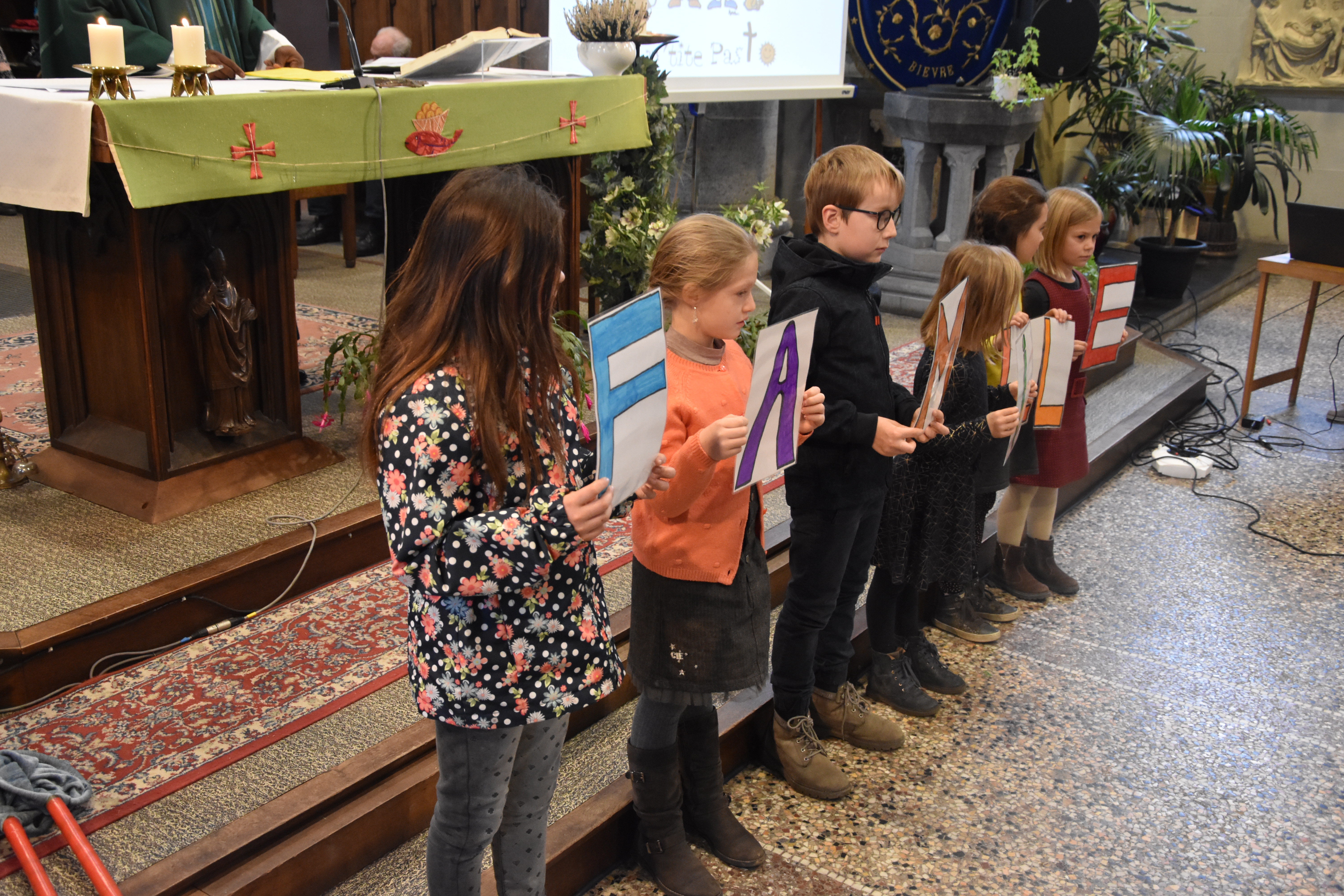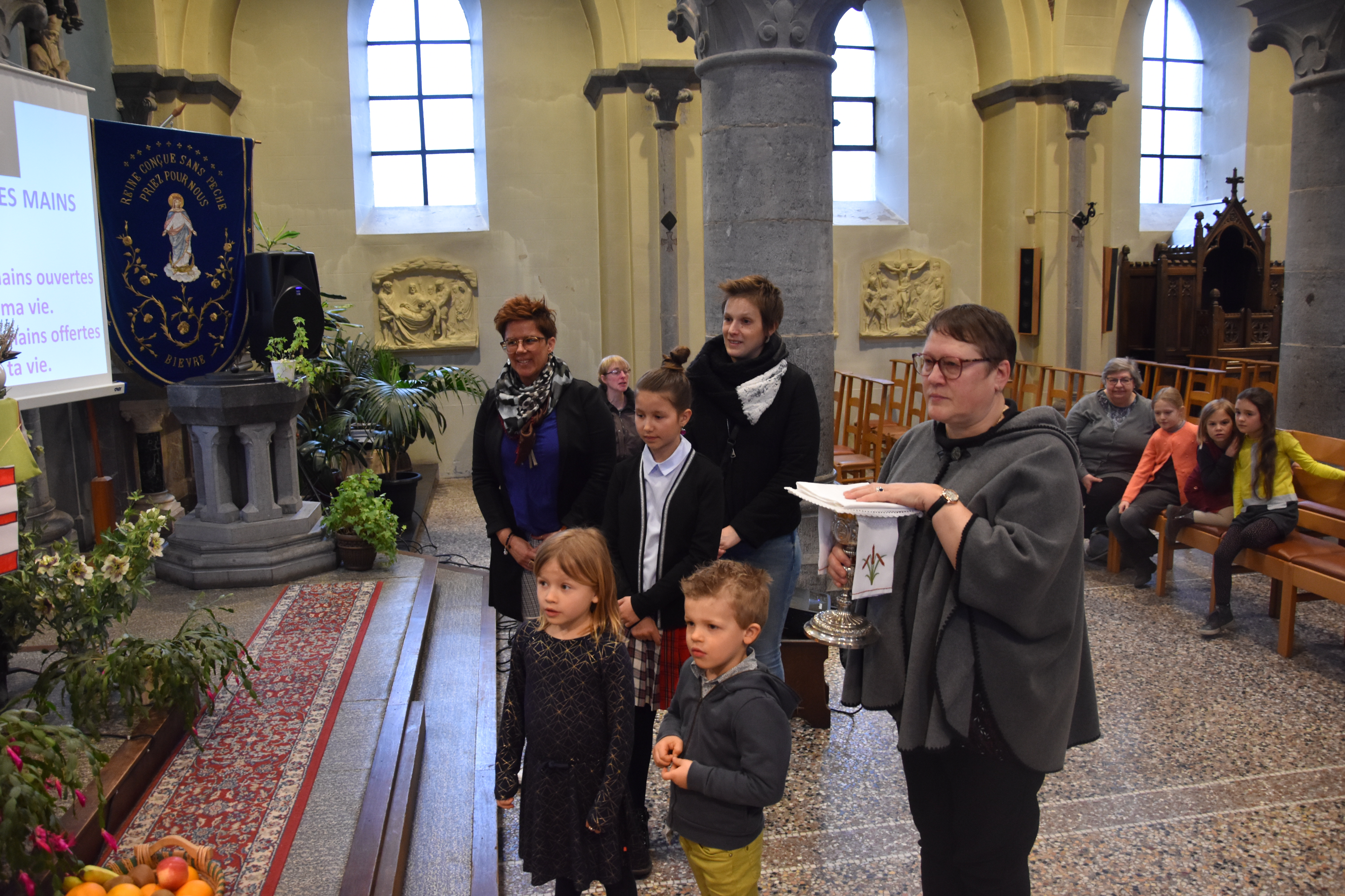 Merci à toutes les personnes qui ont donné de leur temps et de leurs compétences pour la réussite de cette eucharistie participative, à notre prêtre, Casmir, à la chorale de Bièvre, à Johan pour l’appui technique-sons, à tous les enfants présents, leur famille et les personnes qui ont pris une part plus active. Merci à Sandra et à Nicolas pour les photos.