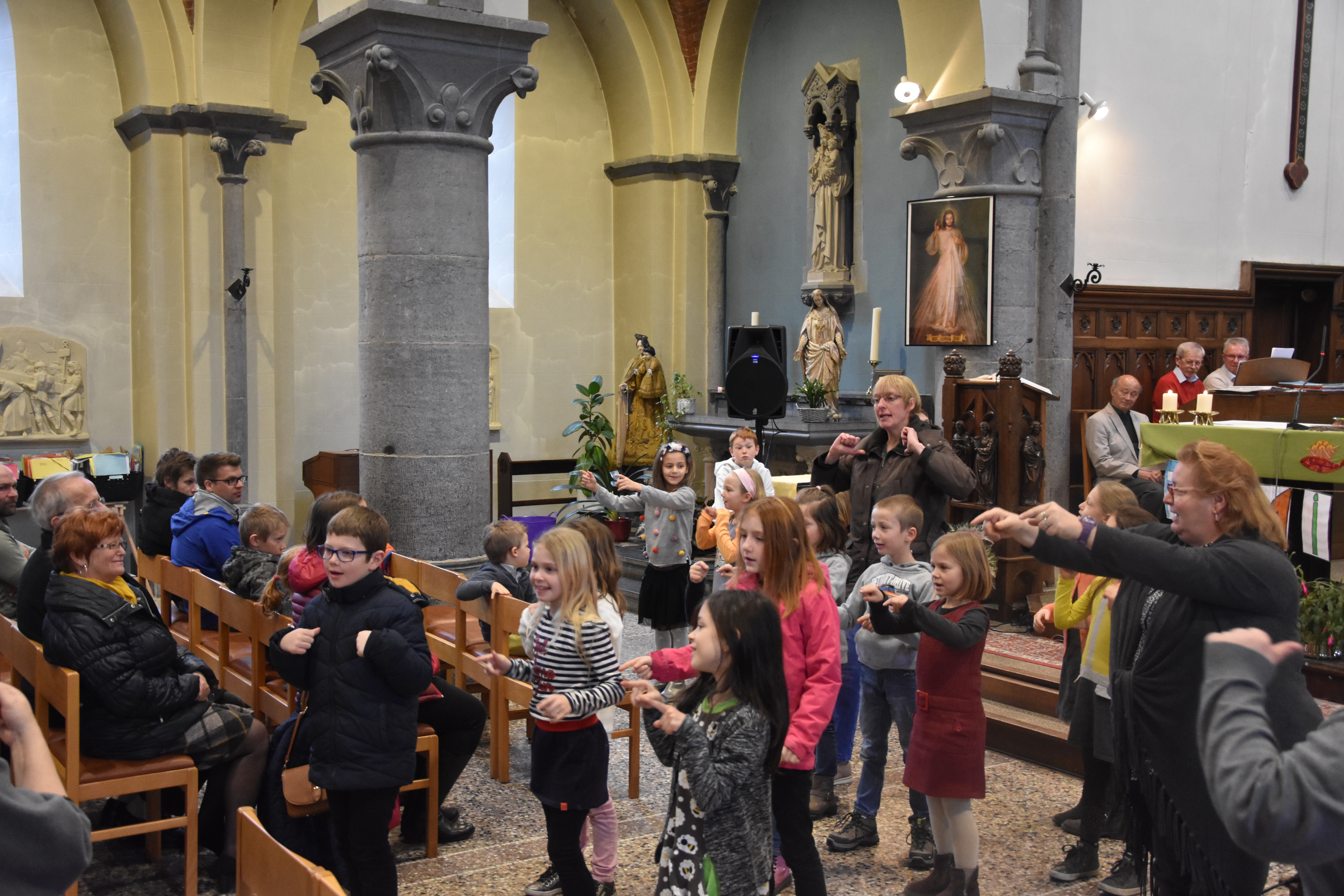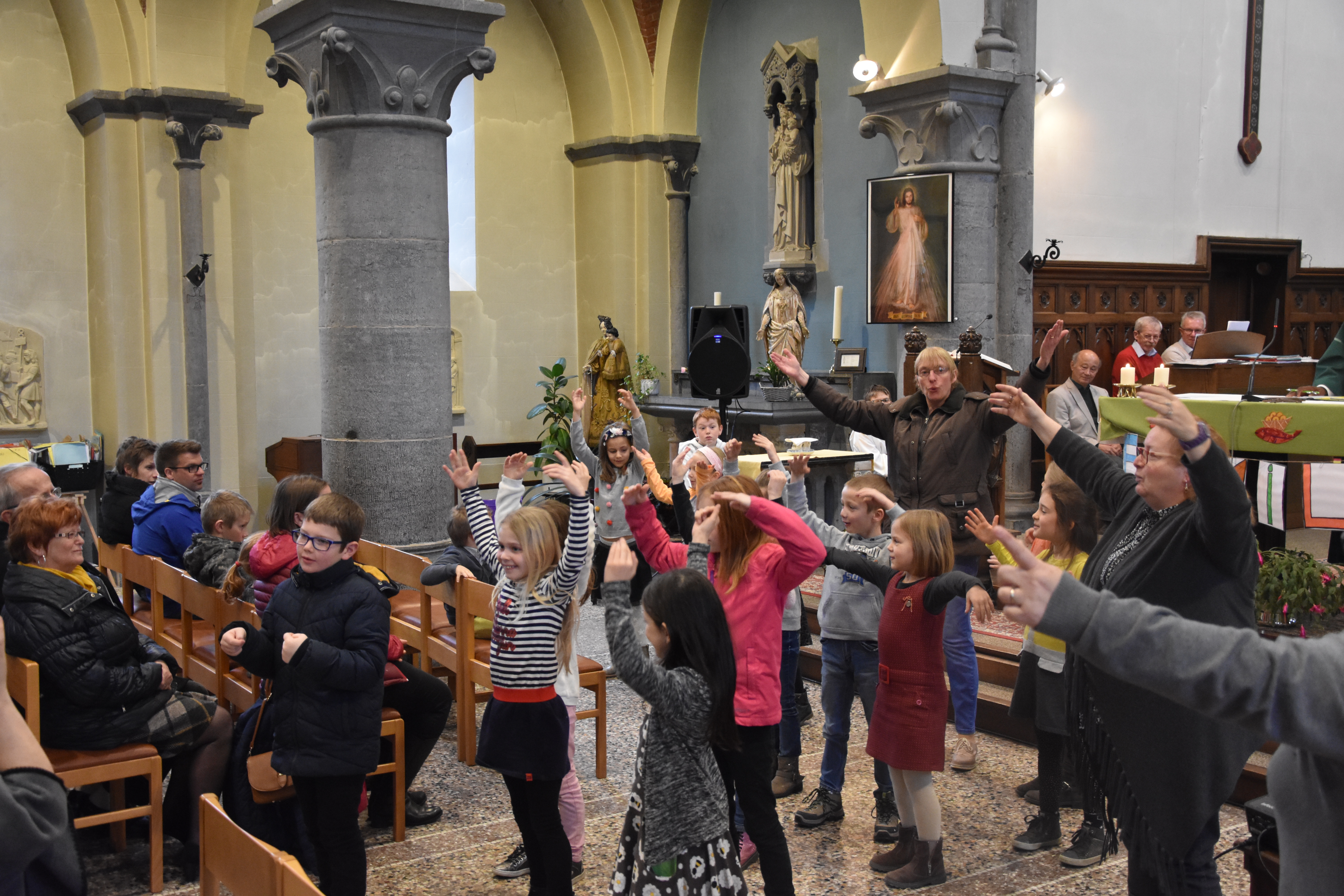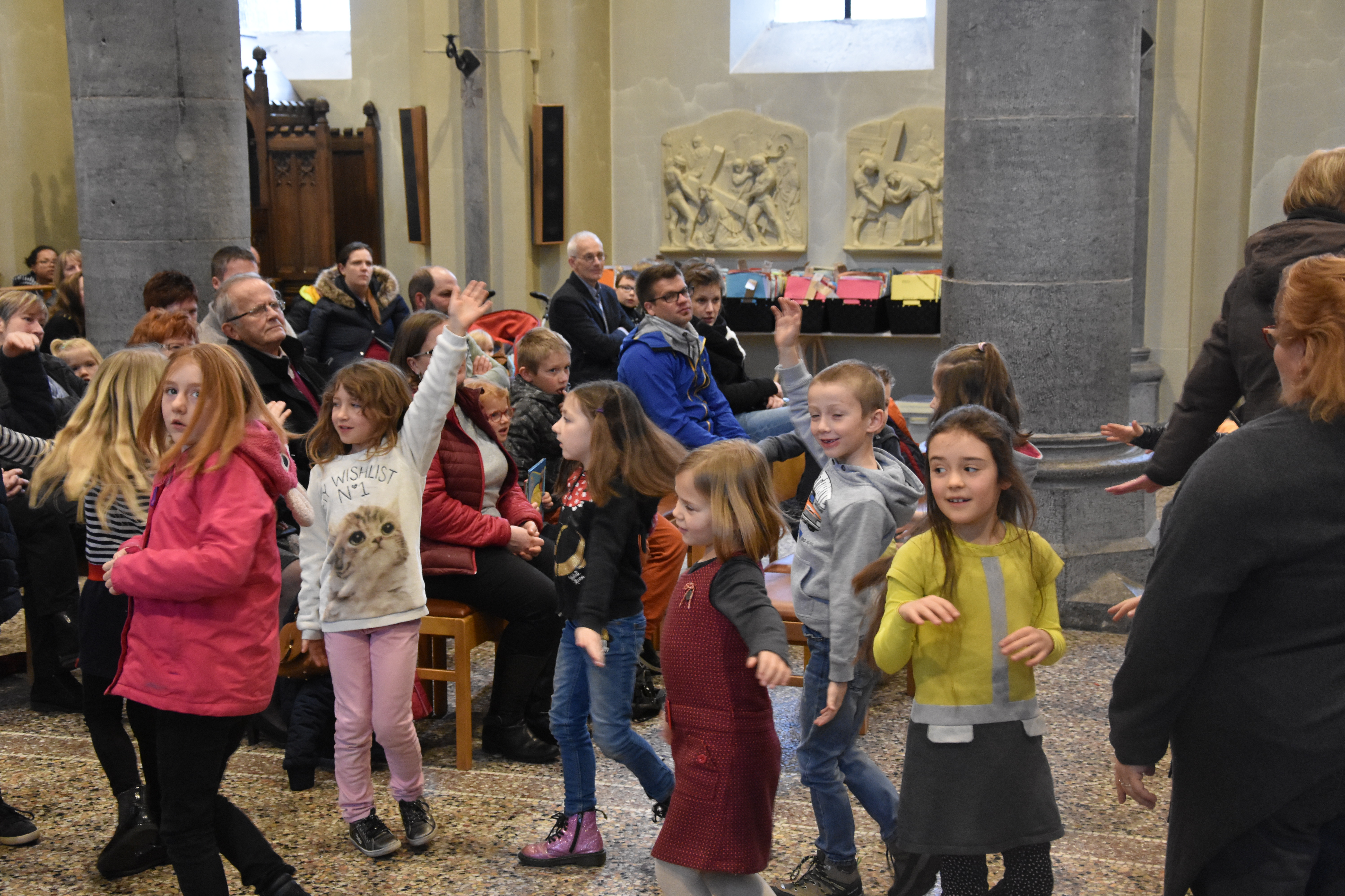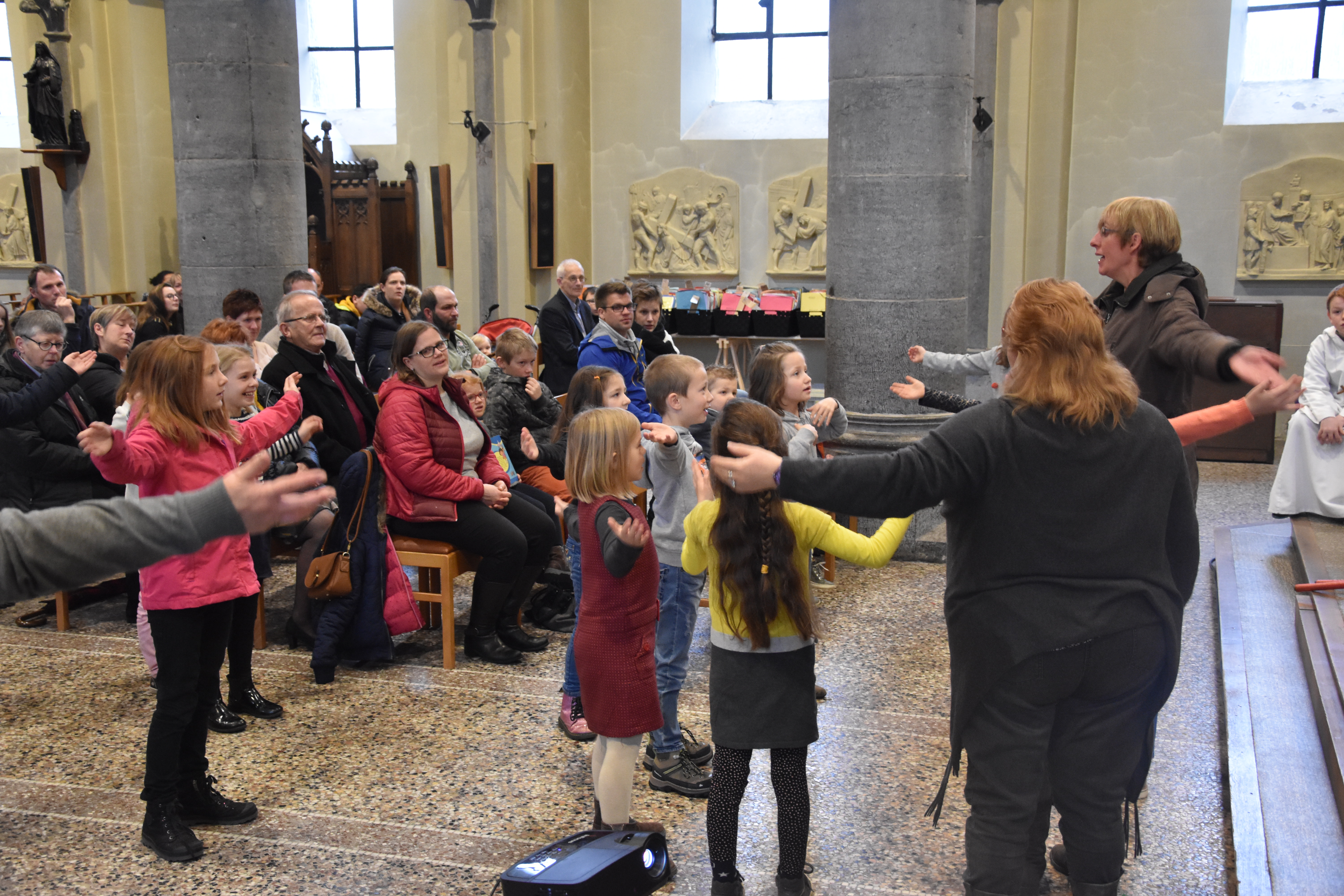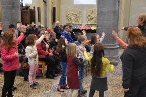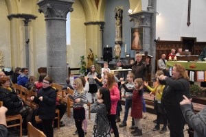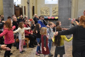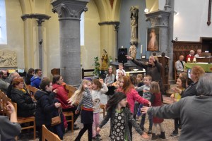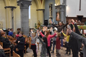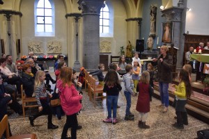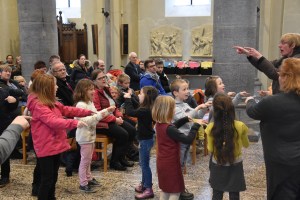 Les enfants des deux années avaient tout d’abord rendez-vous à l’église pour apprendre la chorégraphie d’un chant gestué que nous désirions présenter lors de la messe des familles du dimanche 3 mars.