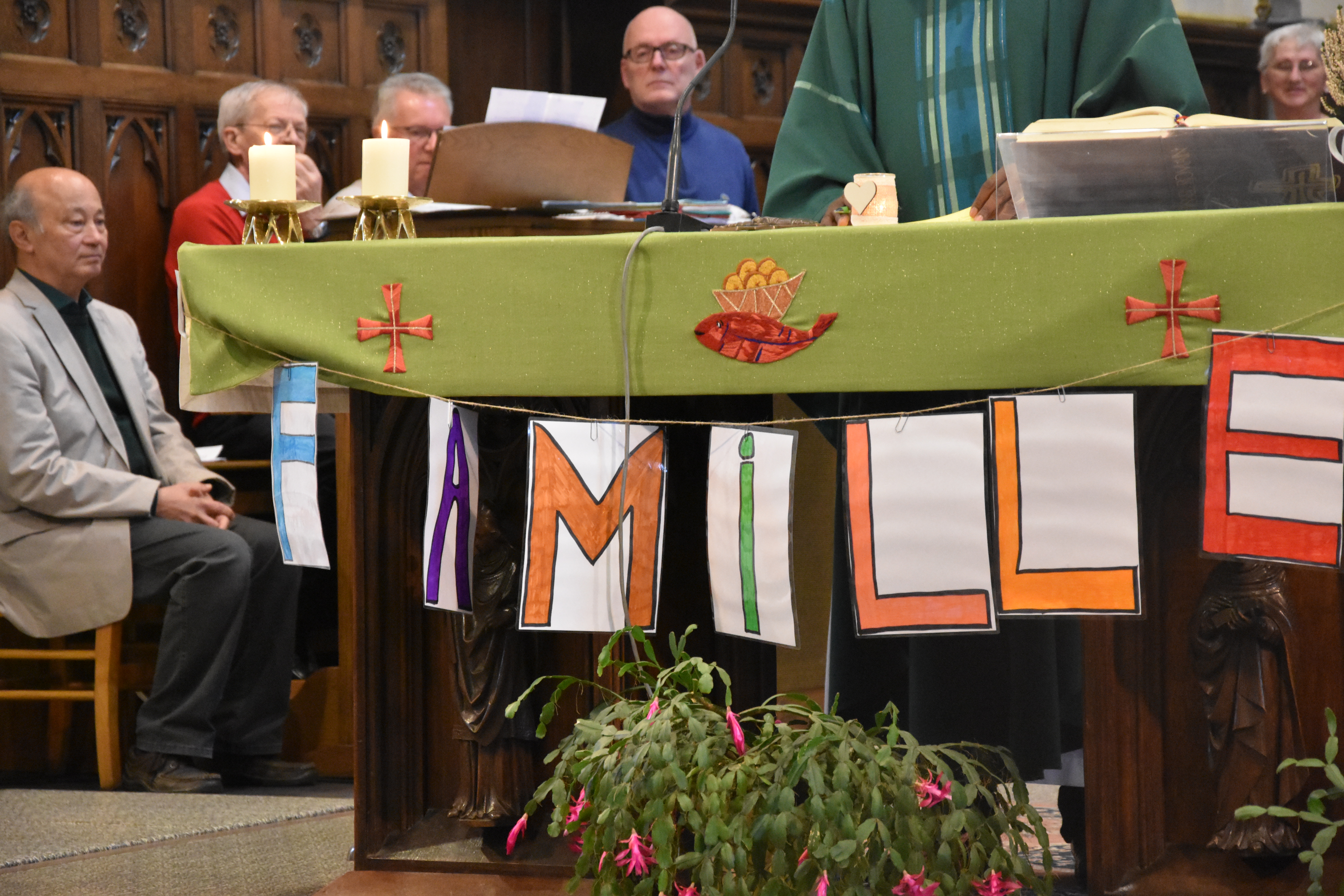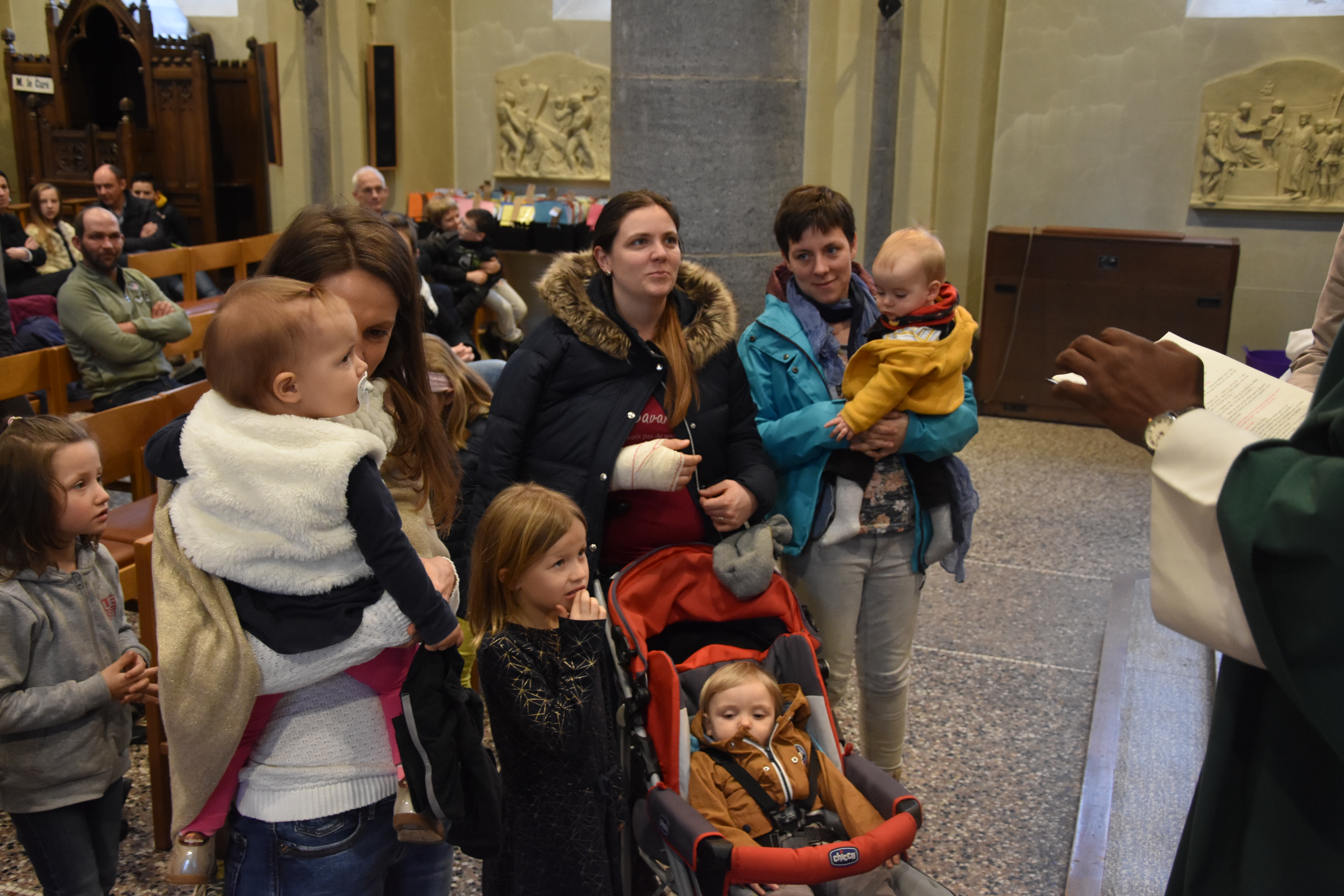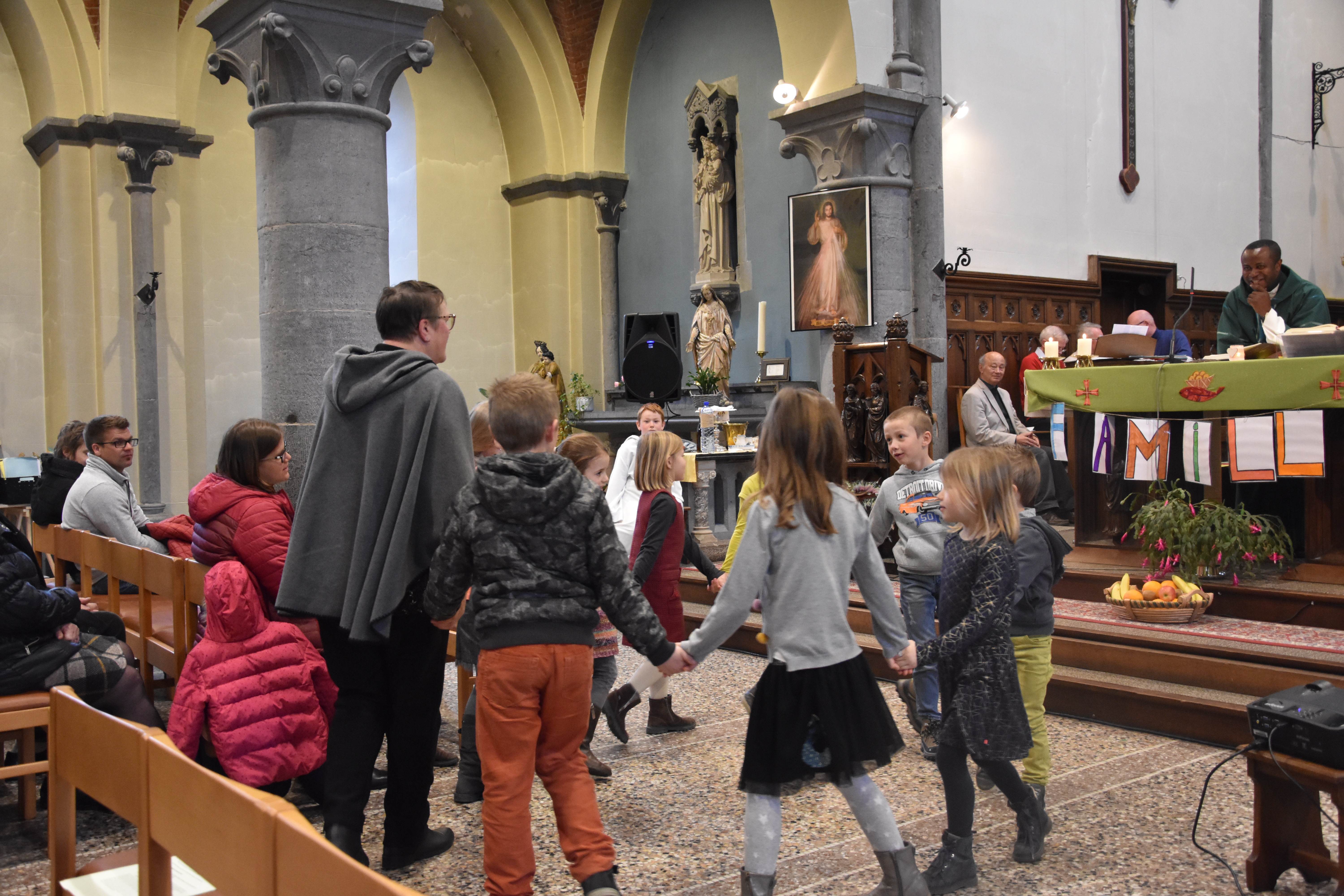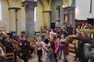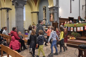 Beaucoup d’enfants du plus petit au plus grand … des parents, des grands-parents, des paroissiens … Tout ce petit monde a participé avec sourire et enthousiasme à toutes les étapes de cette messe qui change de l’ordinaire avec un diaporama – un chant gestué – un tambourin – une animation autour du mot famille – deux chants appris par tous avant la messe – une procession d’offrandes présentée par deux familles – des lecteurs de tous les âges – la ronde de la P’tite Pasto – un petit temps de silence – la bénédiction des enfants baptisés en 2018 … Une eucharistie qui avait été voulue dynamique, festive et participative … Pari réussi, d’après les retours reçus après la messe… 🙂 « On pourrait en célébrer une plus souvent ! » 😉 Pour clôturer ce beau moment, un apéritif a été offert à tous ceux qui le souhaitaient !
