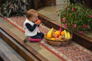 Différents rôles ont été attribués aux enfants (lectures – dressage de la table – aide pour le lavement des mains etc…) et aussi aux adultes (lavement des mains – intentions – lectures etc…).