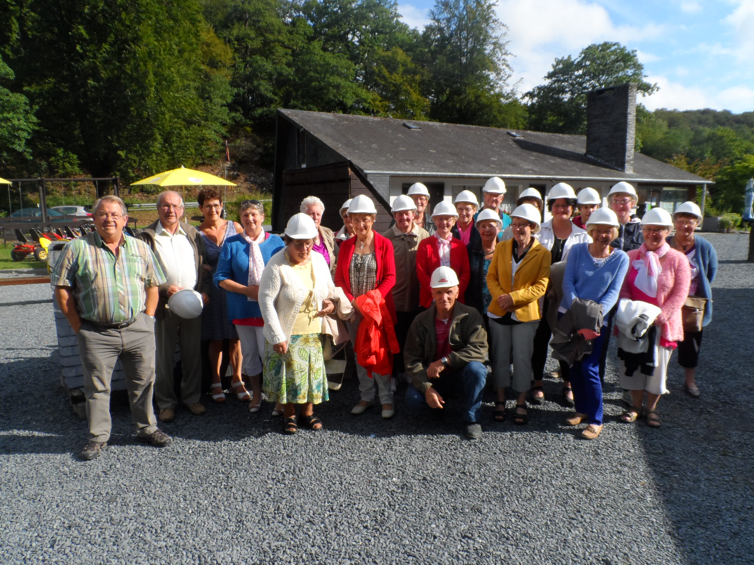 Ce samedi 29 août, plusieurs membres de la chorale interparoissiale de Bièvre ont passé une journée de détente. Cette dernière a commencé par la visite de l’ardoisière de Bertrix. Accompagnés par un guide passionné et passionnant à écouter et qui a travaillé dans cette ardoisière, Louis, les choristes ont été équipés d’un casque protecteur (cfr photo à droite) pour descendre dans la mine et découvrir ce travail minutieux et difficile. Midi, il est temps de casser la croûte … sous un magnifique soleil ! Après le dîner, ils se rendent à Vresse/Semois pour visiter une exposition de peintures au centre d’interprétation. Puis, la journée se poursuit avec la visite de l’agri-musée à Rochehaut. Après le casque, les choristes se vêtissent d’un sarrau, d’un bonnet et d’un tablier. Un tour en petit train dans le village (cfr photos ci-dessus) rafraîchit tout le monde et, pour clôturer cette magnifique journée, le repas du soir satisfait les plus gourmands. Lire la suite