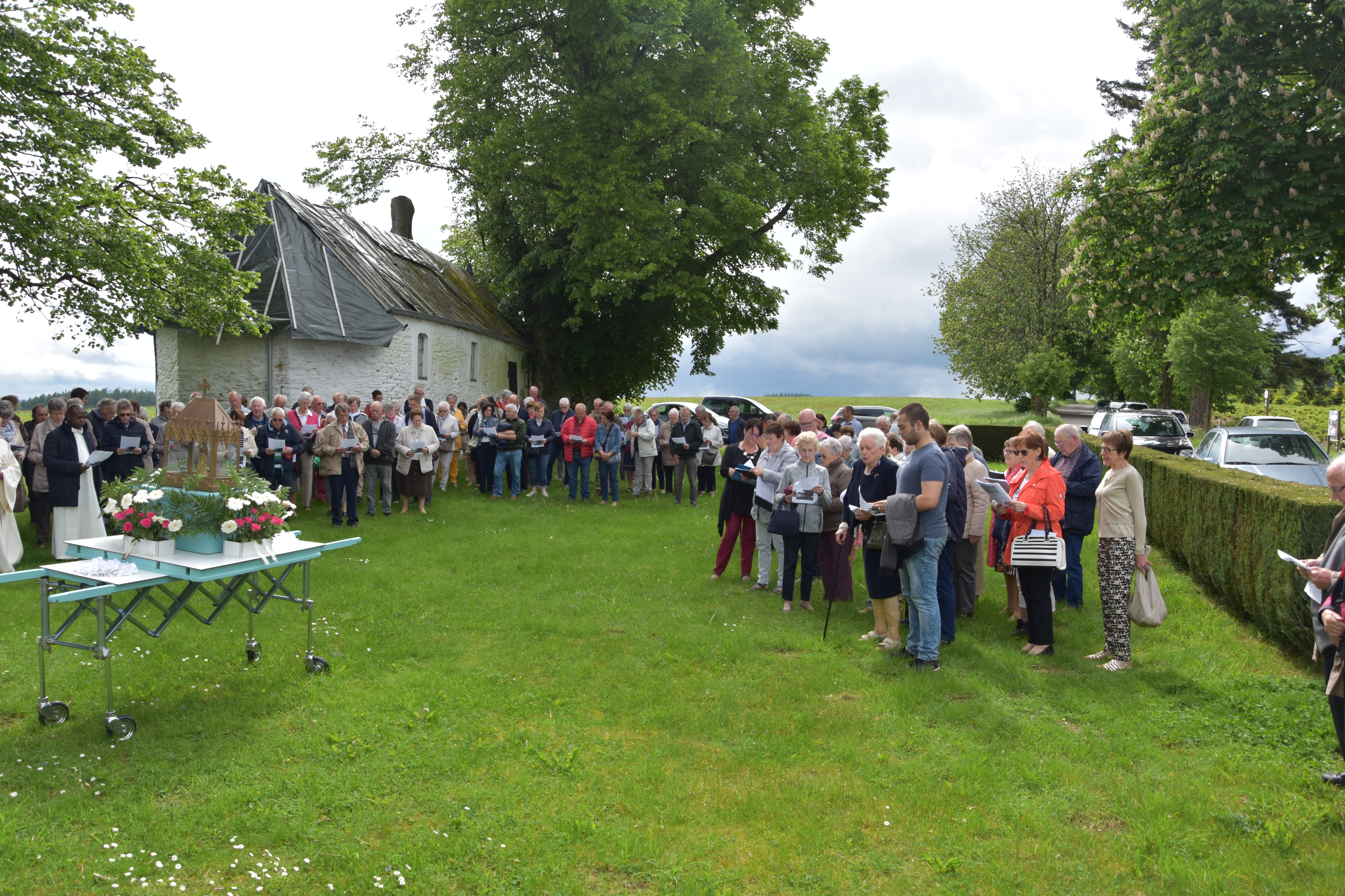 La tradition a été respectée ce jeudi de l’Ascension à Oizy. En effet, de nombreux paroissiens ont rejoint, comme chaque année, l’église de Oizy pour vivre ensemble l’eucharistie et convergé ensuite, à pied, vers la chapelle Notre Dame de Oizy en attente des réparations des dégâts occasionnés par la tempête de juillet 2018 ! Le beau temps était de la partie, la chorale en voix, et Madame Yvonne, du haut de ses 93 printemps, toujours fidèle au poste dans l’organisation et la préparation de ce pèlerinage.