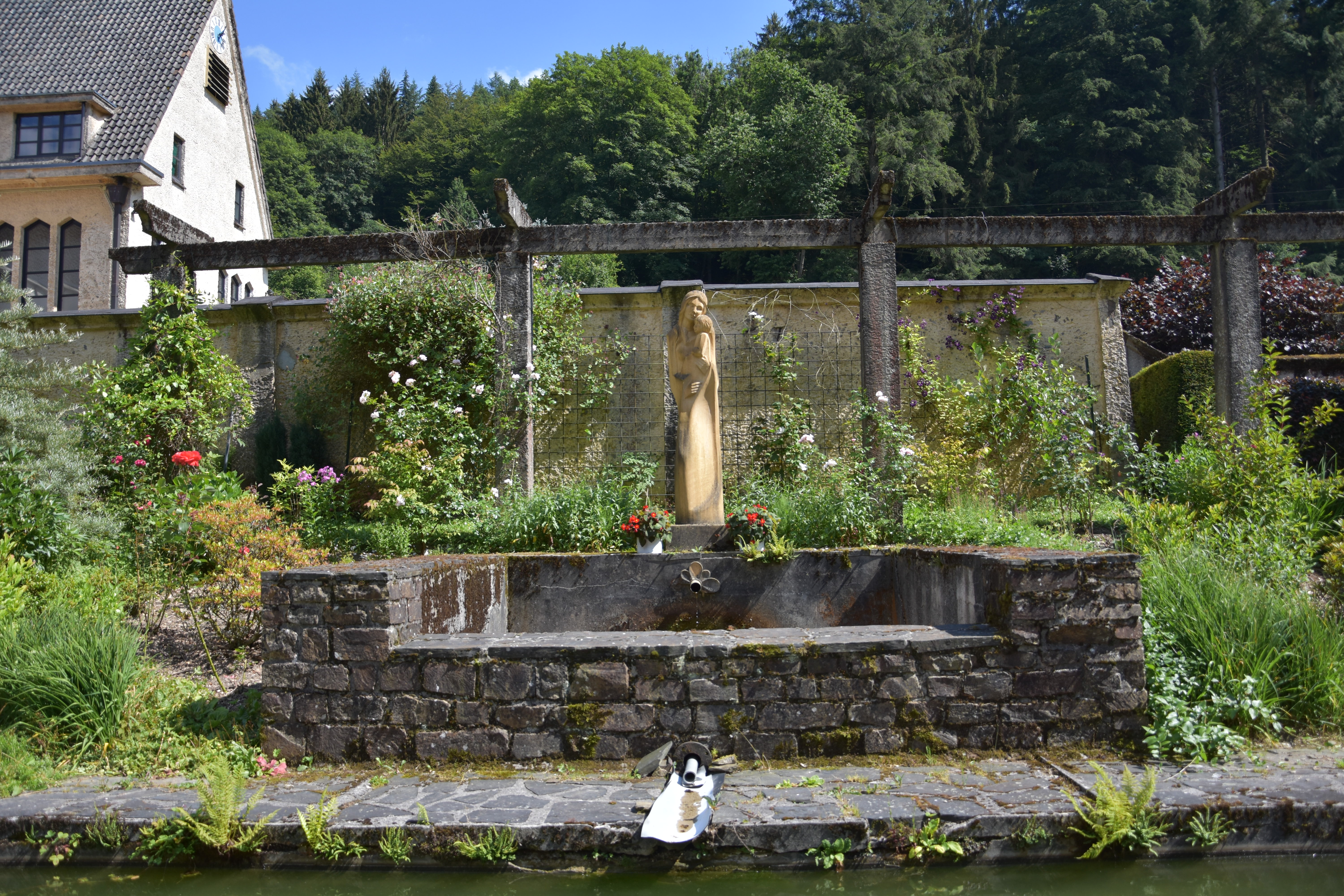 Tout le monde se rend ensuite à pied vers l’abbaye Notre-Dame de Clairefontaine où Sœur Monique nous fait visiter les lieux. Quelle quiétude propice à la prière et au recueillement ! Quelle magnifique paysage ! Sœur Monique nous a expliqué la vie des moniales (ordre des cisterciens) ainsi que quelques oeuvres d’art.