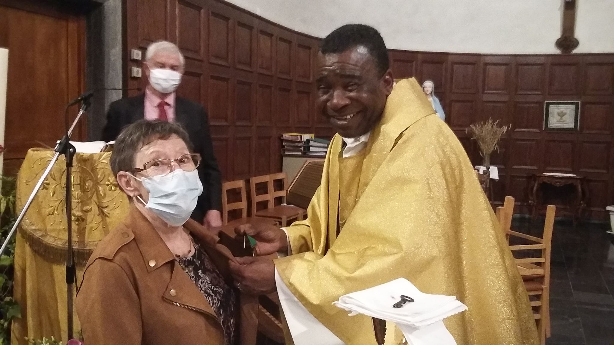 Dans son homélie, l’abbé Casmir a insisté sur la nécessité de construire des ponts et pas des murs car c’est alors que l’intolérance s’installe, que les déclarations agressives se multiplient, que le fanatisme, la violence et la haine prennent toute la place. Ces murs nous empêchent de voir les misères des autres. Il a ajouté que notre monde est malade de faire des réserves alors que d’autres manquent du minimum; notre monde où beaucoup ne sont pas prêts à partager avec ceux qui n’en ont pas; où beaucoup ne pensent plus au bonheur des autres (c’est l’égoïsme qui règne). Il semble qu’il y en a qui ont oublié que la bougie ne perd rien de sa lumière en la communiquant à une autre bougie. Il a conclu son homélie en disant que, comme ses collaborateurs, chaque matin, le Seigneur nous appelle et il nous envoie en nous donnant ses prescriptions pour cette mission d’unité, de consolation, de justice et de partage qui vise le bien-être de tous et de retour chaque soir, il nous faut lui annoncer ce que nous avons fait et enseigné en son nom.