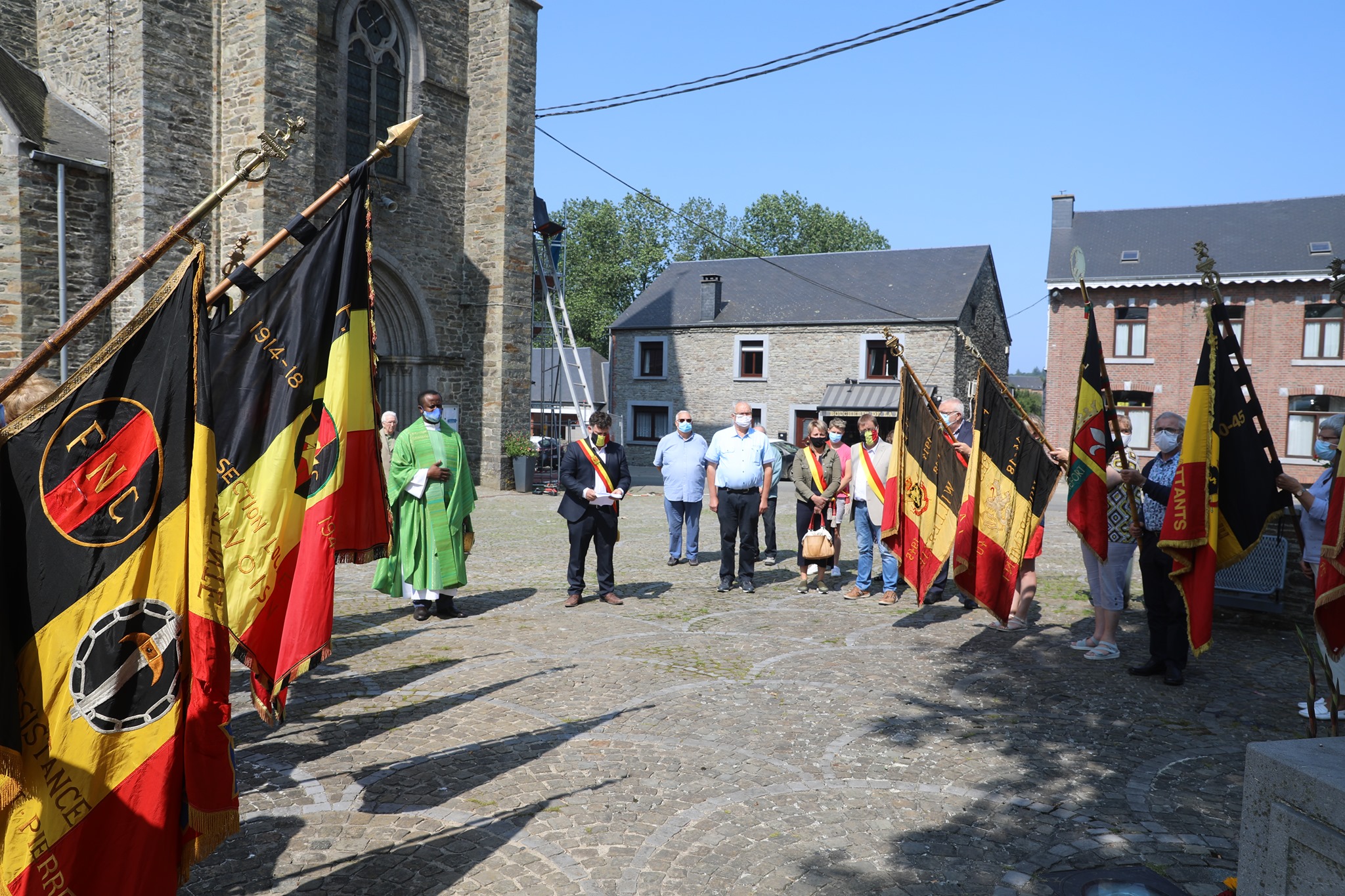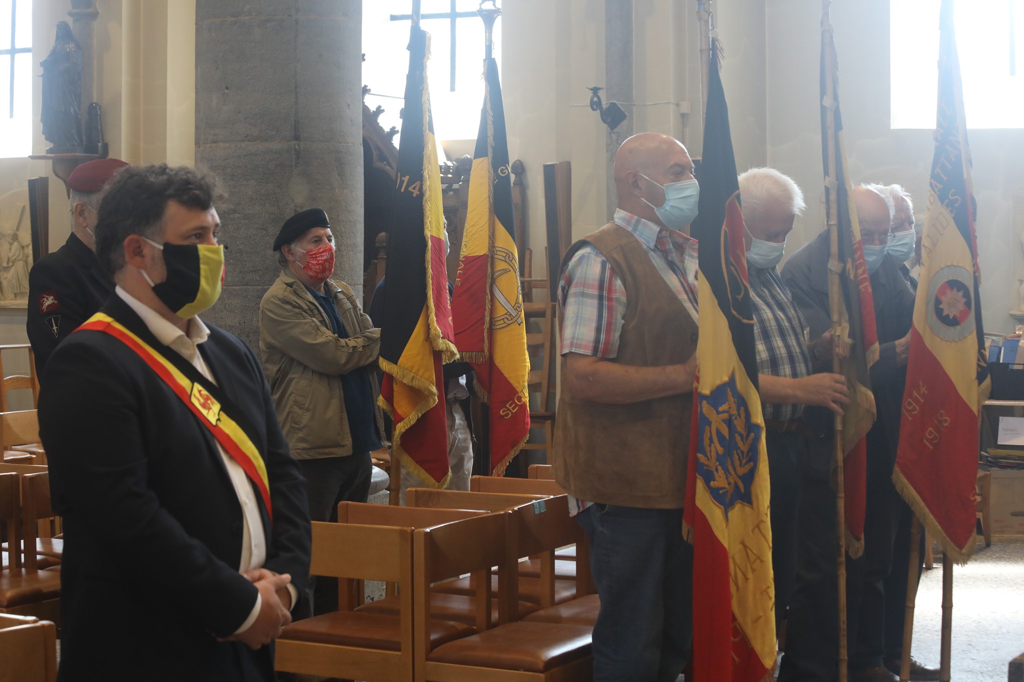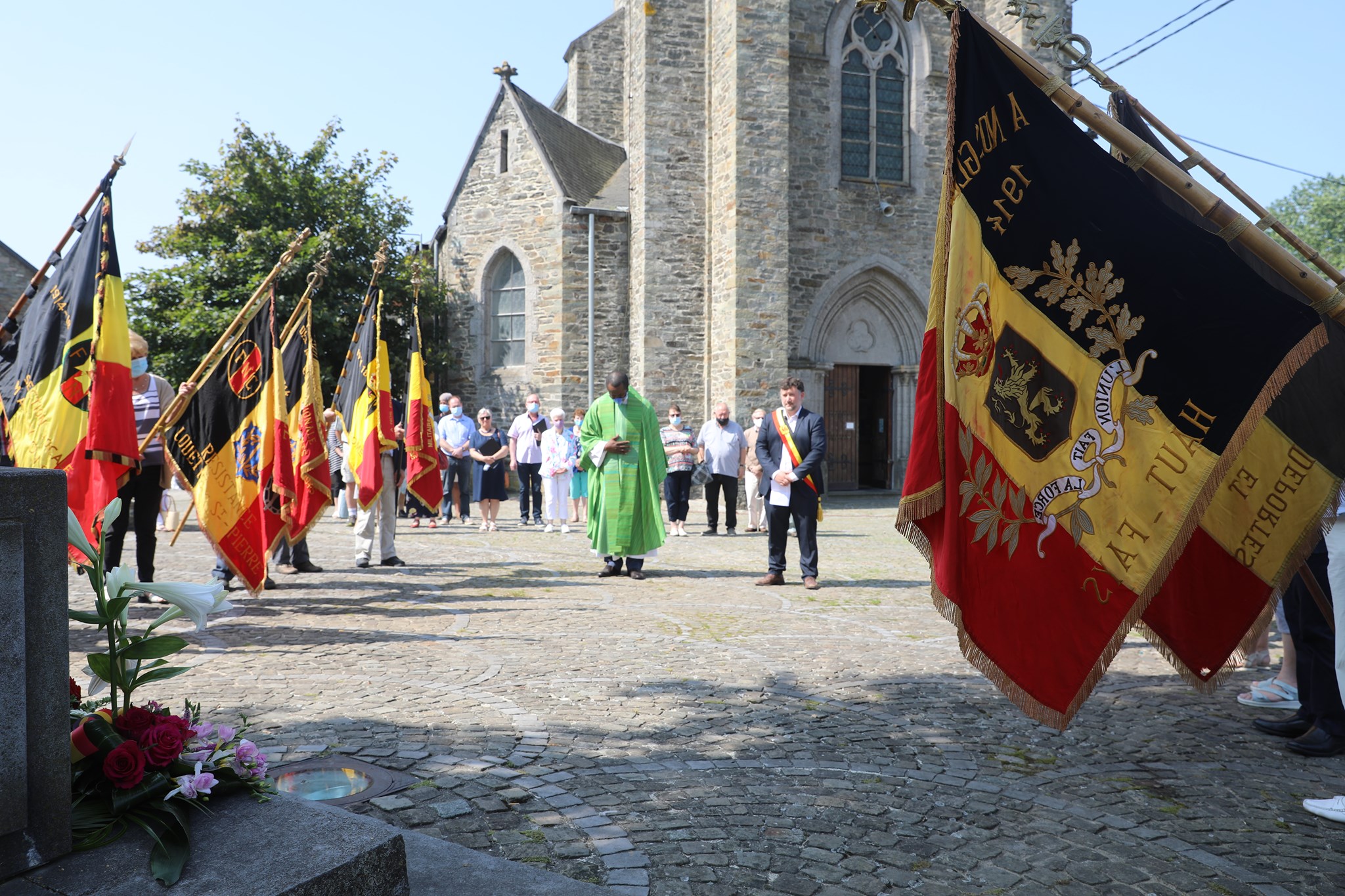 Après la messe, une courte cérémonie d’hommage s’est déroulée devant le monument aux morts situé sur la place de l’Europe. Monsieur Michael Modave, bourgmestre ff. a prononcé un discours débutant par une minute de silence. Des gerbes ont été déposées devant la stèle commémorative.
