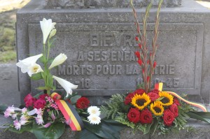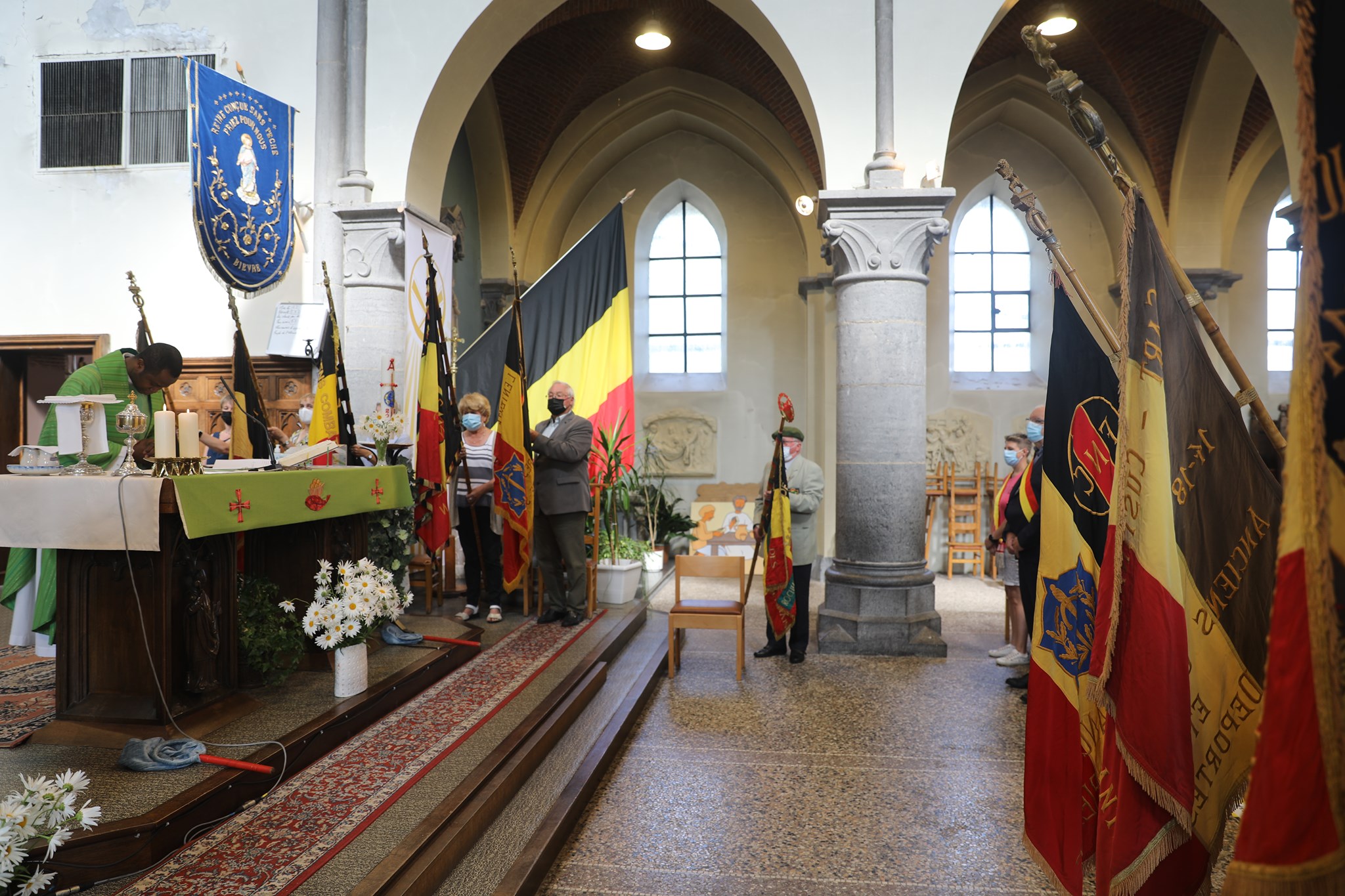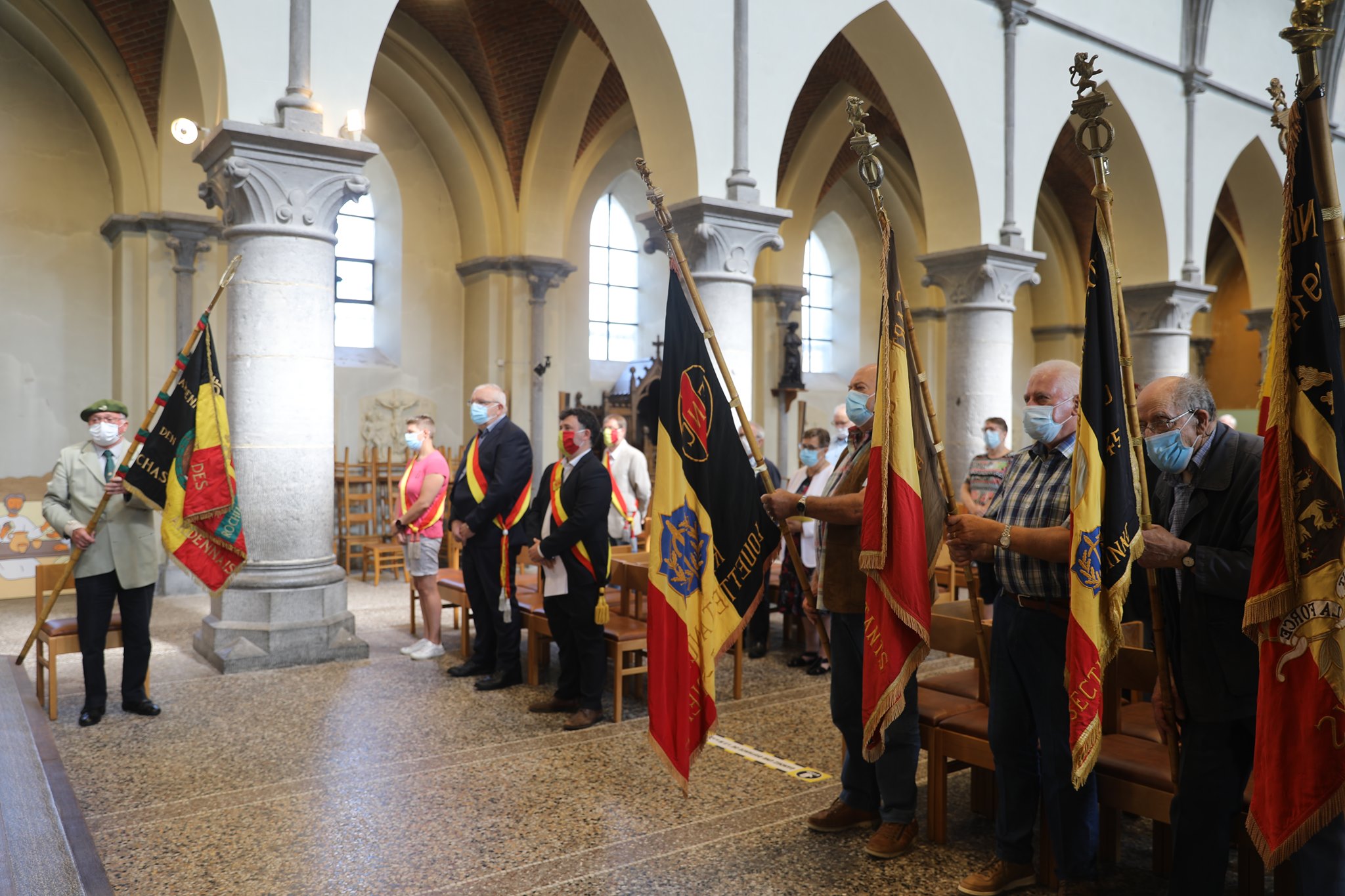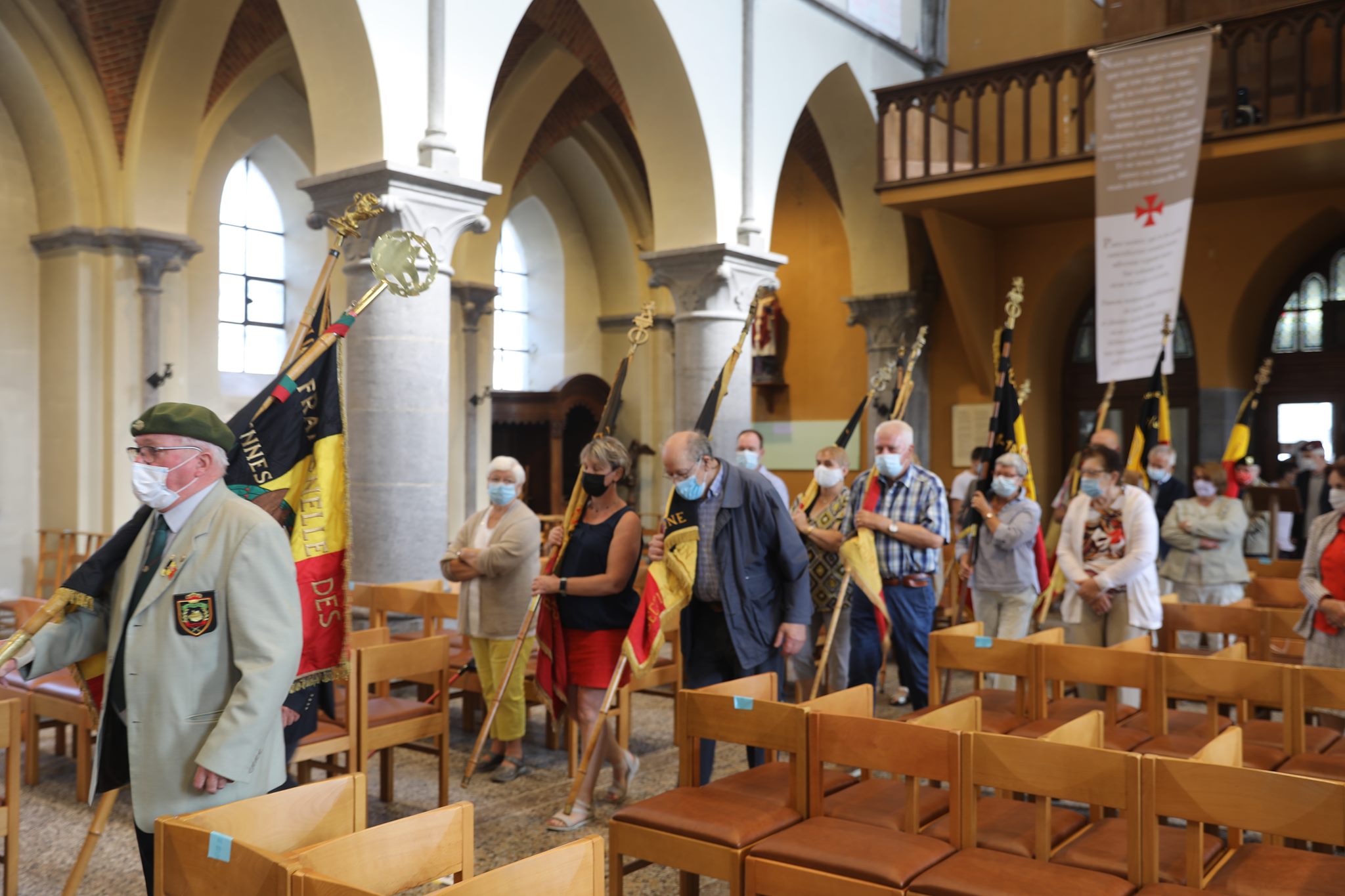 Après la messe, une courte cérémonie d’hommage s’est déroulée devant le monument aux morts situé sur la place de l’Europe. Monsieur Michael Modave, bourgmestre ff. a prononcé un discours débutant par une minute de silence. Des gerbes ont été déposées devant la stèle commémorative.
