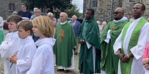 La météo est maussade. La procession partie de l’évêché pour rejoindre la cathédrale se fera sous les parapluies, la pluie s’étant finalement invitée. Qu’importe, le soleil est lui dans les cœurs.