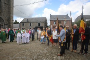A la fin de la célébration, Mgr Lejeusne prendra la parole pour des remerciements adressés selon ses termes « aux chrétiens du diocèse, chrétiens des provinces de Namur et de Luxembourg. » Ses propos iront ensuite aux jeunes : « Osez l’aventure à la suite du Christ, il propose un chemin de bonheur qui vous comblera de joie. Cela commence par un oui qui permet de vous donner avec générosité pour construire une société fraternelle, pour construire, avec d’autres, le Royaume de Dieu. Votre oui est enraciné dans le oui de Marie et se poursuit avec le oui de toutes celles et ceux qui nous ont précédé. Dieu compte sur vous, l’Église a besoin de vous, j’ai besoin de vous annoncer le Christ Vivant, pour témoigner de la sollicitude de Dieu pour les femmes et les hommes de ce temps. Se rendre disponible pour la mission peut être déconcertant. Je peux en témoigner encore aujourd’hui, mais il y a tant de manière de vivre cette disponibilité, comme religieux ou religieuse, comme prêtre, dans le mariage et la vie de famille, dans un engagement au service des autres. Servez là où Dieu vous appelle et vivez votre mission dans la joie. » Mgr Lejeusne avait choisi Mgr Warin pour être un des trois consécrateurs. Il n’oubliera pas de le remercier à la fin de la célébration : « Et bien sûr un chaleureux merci à Mgr Warin pour son service fidèle et patient à la suite du Christ et pour le diocèse de Namur. » Mgr Warin, évêque émérite, ému se lèvera pour saluer de la main l’assemblée. Un assemblée qui n’a pas ménagé ses applaudissements.