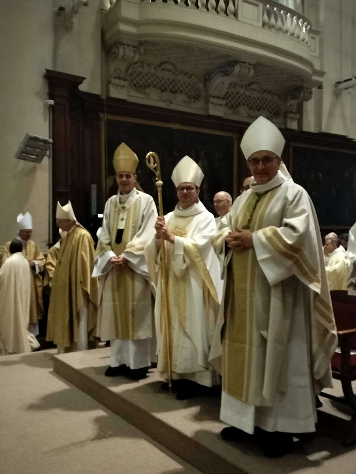 Accompagné de Mgr Terlinden et de Mgr Gschwind, Assomptionniste et évêque de Pamiers, Couserans et Mirepoix, il est allé à la rencontre des personnes rassemblées dans la cathédrale. Il a parcouru les allées pour les bénir. Assemblée qui n’a pas ménagé ses applaudissements. Il a ensuite pris la direction de la chapelle universitaire où les familles assistaient à la retransmission sur écran géant avant de gagner l’auditoire Vauban où il était possible de vivre toujours sur écran géant cette ordination. Un moment rare. La dernière ordination d’un évêque dans le diocèse avait eu lieu le 26 septembre 2004, c’était celle de Mgr Warin. Les évêques qui ont suivi dans le diocèse étaient déjà ordonnés.