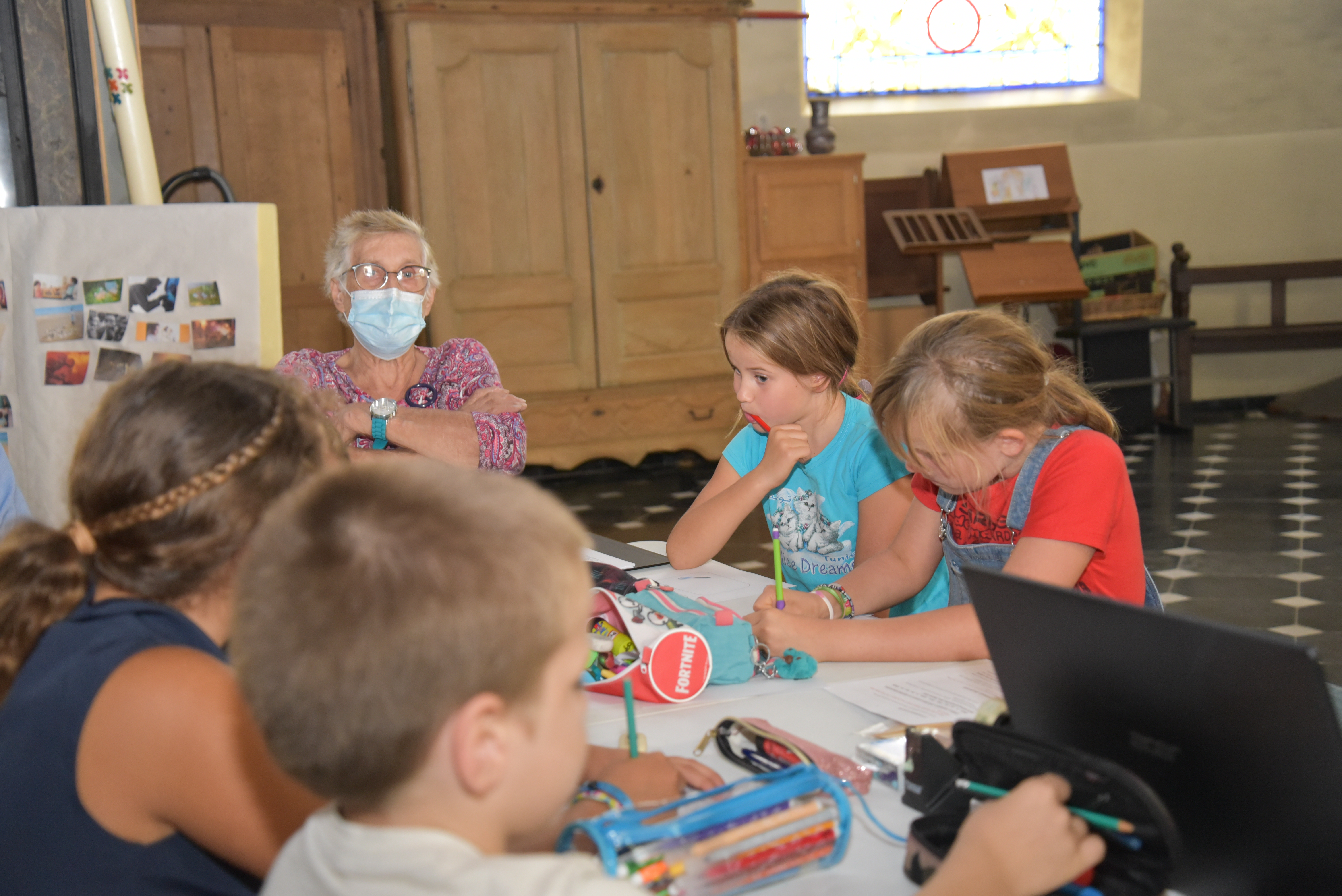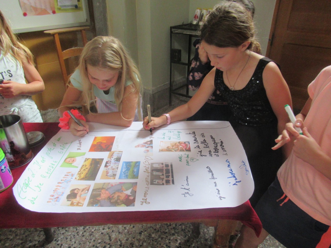 Comme les deux autres groupes, les enfants du secteur Bièvre/Daverdisse ont vécu un temps de découverte de la prière eucharistique en 9 étapes. Au programme : réflexions – explications – confection de panneaux – écoute d’un texte biblique – chants etc… En fin d’après-midi, nous nous sommes rendus en deux groupes dans la très jolie chapelle Notre Dame de Lourdes à Bièvre où nous avons vécu un temps d’adoration devant le Saint Sacrement, un « coeur à coeur » avec Jésus. Mireille avait préparé un grand coeur rouge en dessous duquel les enfants ont noté leur prénom. Pour clôturer cette activité, un temps de célébration a été proposé avec prières et chants. Nous avons pensé très fort aux deux autres groupes qui se trouvaient à Gedinne et Alle/Semois.