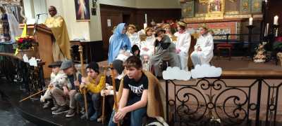 On organise chaque année une petite représentation avec les enfants qui a lieu au cours et après la messe, notamment présidée par l’abbe Santiago. Le mercredi avant, les enfants ont préparé des biscuits qui ont été donnés pendant la messe. L’événement est mis en œuvre surtout par Claude, la sacristine, et des autres personnes d’Ucimont. C’est une tradition qui perdure depuis des années, avant notre arrivée à Bouillon.