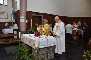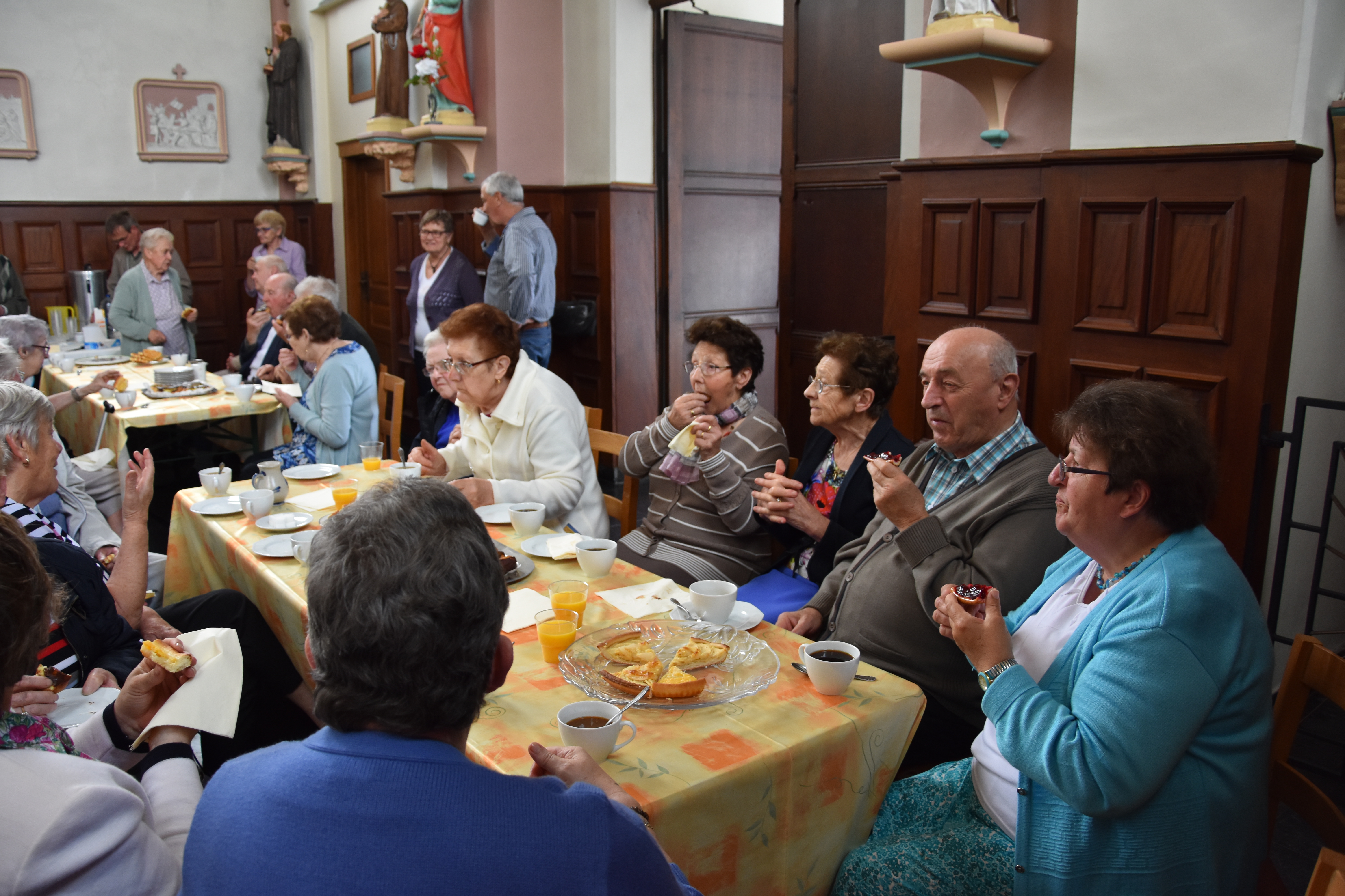 Dans la région de Bièvre, Sainte Rita est très vénérée ; il y a même une chapelle qui lui est dédiée et il y a beaucoup de « visiteurs ». Ce jeudi 24 mai, a eu lieu une eucharistie, en présence de 75 personnes, en l’honneur de la sainte au patro Saint Hubert de Bièvre suivie d’un repas convivial. Des personnes ont présenté spontanément quelques intentions. Dans son homélie, l’abbé Casmir a mis l’accent sur quelques traits de la personnalité de Sainte Rita : « Elle est une femme qui a vécu ce qu’elle croyait … Comme épouse, par son amour patient, elle parvient à convertir son mari agressif et à connaître enfin le bonheur avec lui ; comme maman, elle vit, de façon inimaginable, la pratique du pardon et elle essaye de la transmettre à ses enfants ainsi qu’à son entourage. Comme veuve, elle ne laisse pas tomber les bras, mais elle va de l’avant, dans la certitude qu’elle peut compter sur notre Seigneur, en cherchant dans la prière, ce que Dieu attend d’elle. Et comme Marie (que nous fêtons ce mois du mai), elle disait «Seigneur, que ta volonté soit faite». Comme religieuse, elle essaye de vivre jusqu’au bout le don de sa vie. En plus, c’est en s’appuyant sur le Seigneur qu’elle a maîtrisé les situations les plus misérables ou désespérées. Elle a une patience devant tout et surtout devant la souffrance. L’abbé Casmir a conclu en disant : Sans doute mes chers frères et sœurs, celui ou celle qui croit, est celui ou celle qui a la patience surtout devant la souffrance. Comme Sainte Rita, croyons simplement. « Moi, »nous dit-elle, « je n’ai jamais fait de calculs humains avec Dieu. Je n’ai pas pensé aux avantages terrestres, ni à la récompense céleste. J’ai simplement aimé. »