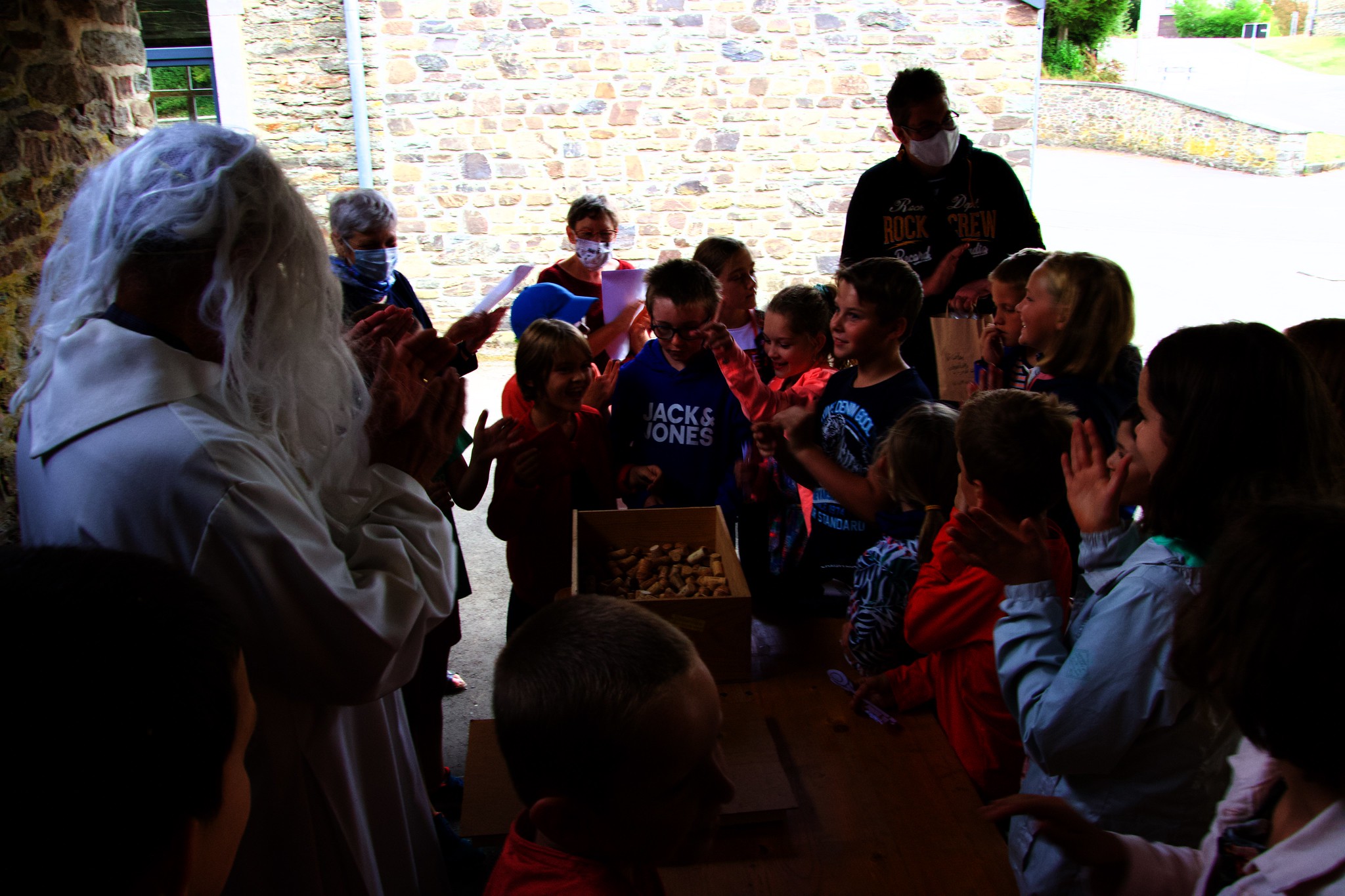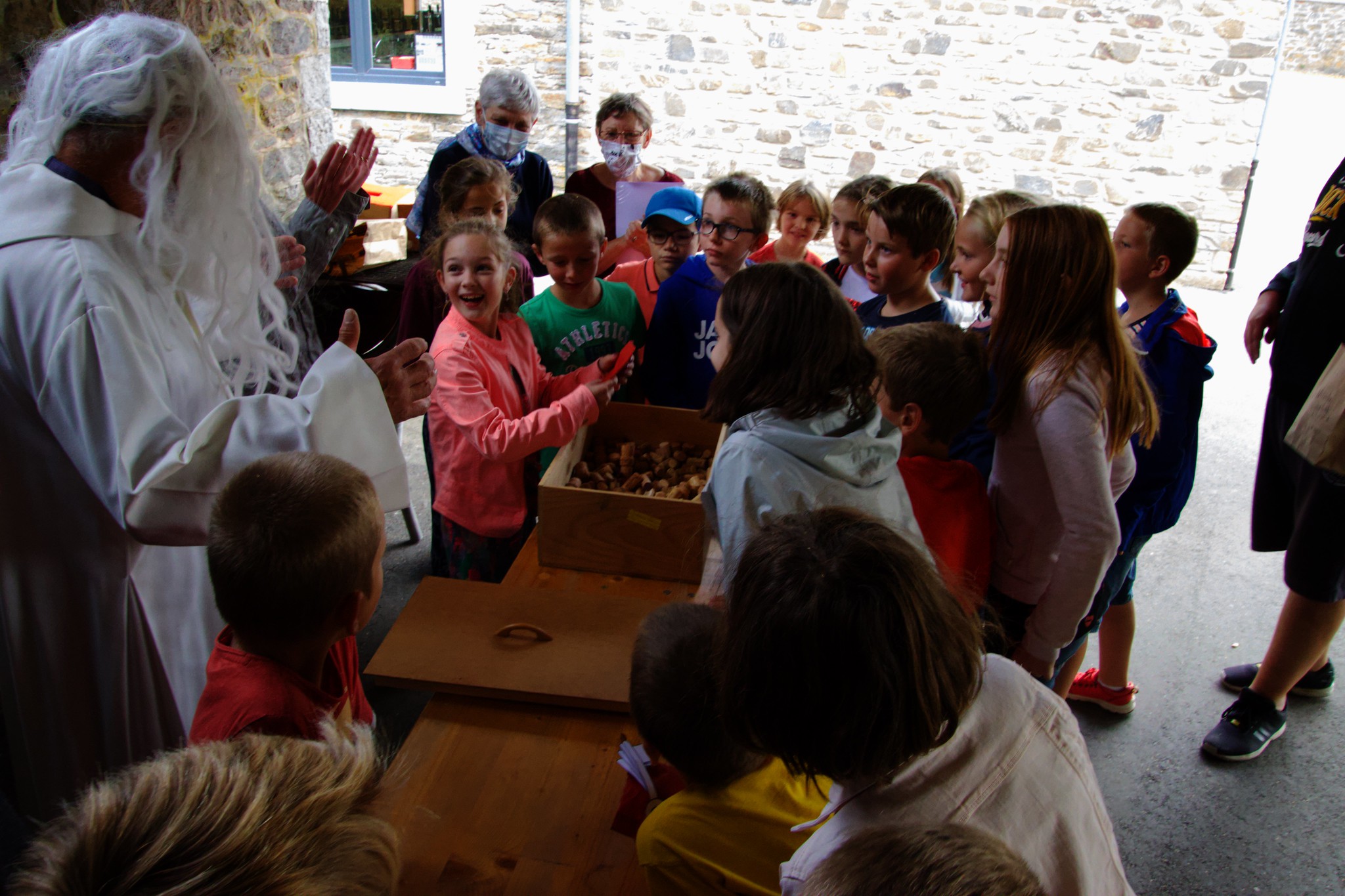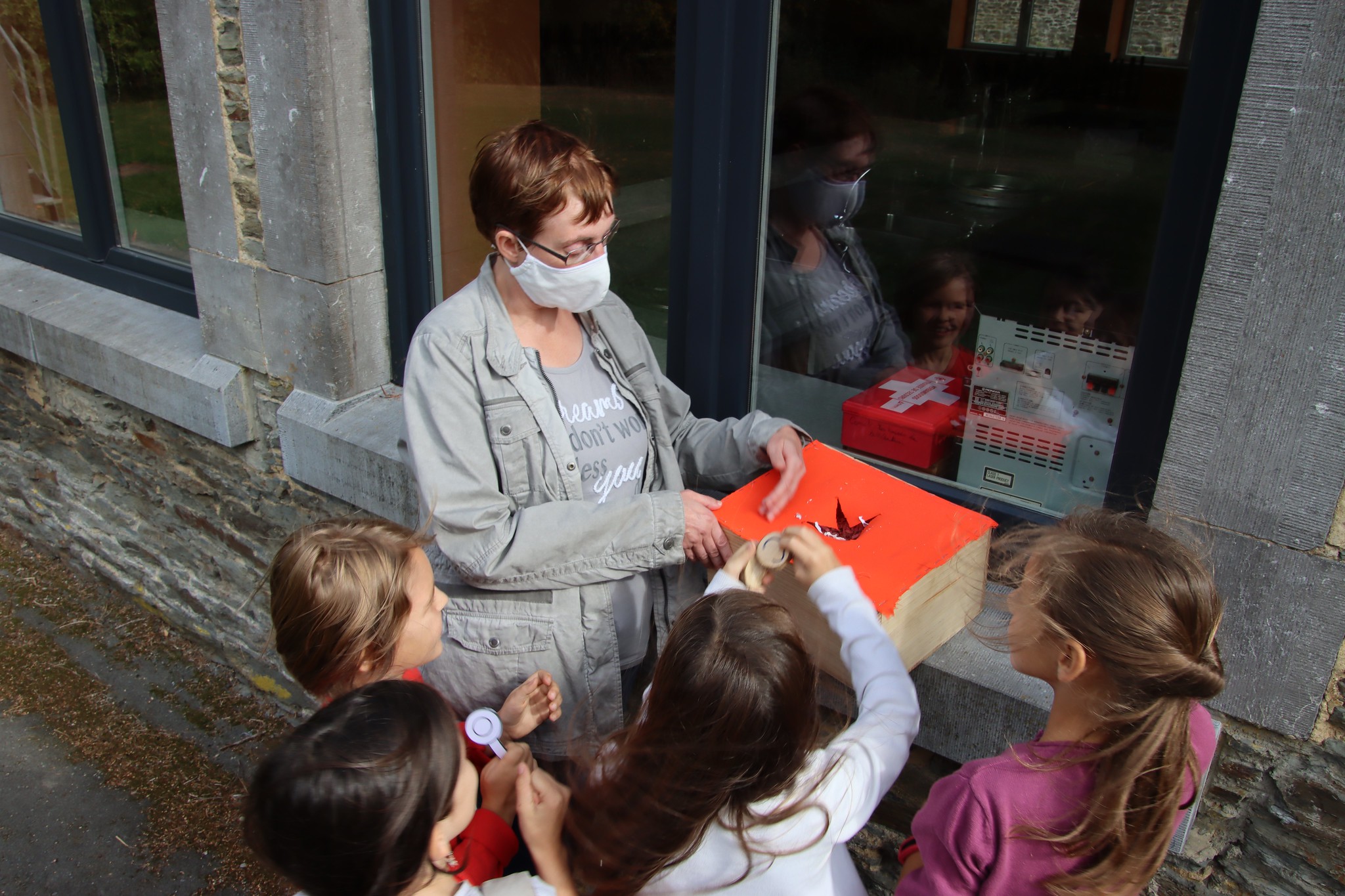 Les enfants des deux années de caté de confirmation des secteurs de Bièvre/Daverdisse et Vresse se sont retrouvés pour l’activité de rentrée habituelle du mois de septembre. Les groupes de l’UP Gedinne Croix-Scaille vivront la même activité en octobre à Bourseigne. Quelle joie de revoir enfin les enfants et les catés malgré les quelques contraintes et de vivre ce temps de jeux et de partage ! Voici le déroulement de l’après-midi : répétition de quelques chants – la belle histoire des apparitions de Lourdes – Grand jeu de Fort Boyard revisité – Fort Caté ! – Visite de la grotte Notre Dame de Lourdes et de la fontaine Saint Fursy – Eucharistie finale ! Comme dans le vrai jeu télévisé, il y avait trois étapes à vivre à « Fort Caté » : 1) un jeu par postes avec des questions de tous ordres : culture générale et religieuse – histoire de la Belgique – apparitions de Lourdes – les sacrements etc… En échange de deux bonnes réponses, chaque mini-groupe recevait une clé. Avec 5 clés, les enfants pouvaient jouer à diverses épreuves qui leur permettaient de récolter une ou plusieurs lettres qui, toutes ensemble, formaient, un mot très important dans notre vie de chrétiens : Communauté. Ce mot leur permettait d’ouvrir et fouiller dans le coffre où un cadeau attendait chaque groupe de caté ! Apprendre en s’amusant, s’amuser en apprenant, c’est vraiment gai ! Et les enfants ont été, dans leur très grande majorité, de bonne humeur, rieurs, très motivés et participatifs ! Savez vous que le village de Bellefontaine possède aussi une grotte Notre Dame de Lourdes ? Et une fontaine St Fursy ? Nous sommes donc allés les montrer aux enfants. Certains y étaient déjà venus ; soit pour se promener pendant le confinement soit avec le jeu Luna et les gardiens des forêts.