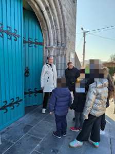 Suite à une demande de la professeur de religion qui souhaitait visiter l’église avec ses élèves, nous nous sommes rendus à Bièvre, Graide Village, Graide Station, Naômé et Oizy avec les écoliers du lieu. Des questions avaient été pensées et rédigées par tous les élèves et ont servi de base pour la découverte de l’édifice proprement dit (coq, cloches, histoire, construction etc,..), de ce qu’on y trouve (fonds baptismaux, tabernacle, chemin de croix, autel, lutrin, sacristie, ornements, confessionnal, chaire de vérité….) et de ce qui s’y passe et se vit (célébrations – eucharistie – messe des familles – mariages – communions – confirmations – funérailles etc…). Les enfants ont été très intéressés et respectueux, ils ont posé beaucoup de questions, ont pu découvrir des lieux ou « objets » qu’ils n’avaient jamais eu l’occasion de voir : calices, burettes, ostensoirs et ciboires dans les coffres forts, sonner la cloche manuelle à Graide Station, petite vitrine à Graide Village, reliquaire, l’intérieur de la sacristie, le jubé, la grotte Notre Dame de Lourdes à Bièvre, le magnifique chemin de croix à Naômé etc… Nous avons pu ouvrir le tabernacle dans toutes les églises et aussi le ciboire contenant la réserve eucharistique, l’occasion d’expliquer ce qu’est une hostie consacrée, nous avons aussi découvert les noms des « objets » grâce à un jeu et/ou nous avons chanté aussi ! Que de découvertes mutuelles ! Merci à l’abbé Casmir, à Xavier, diacre et Chantal pour l’église de Naômé. Merci aussi à tous les élèves et à leur professeur ! Véro