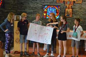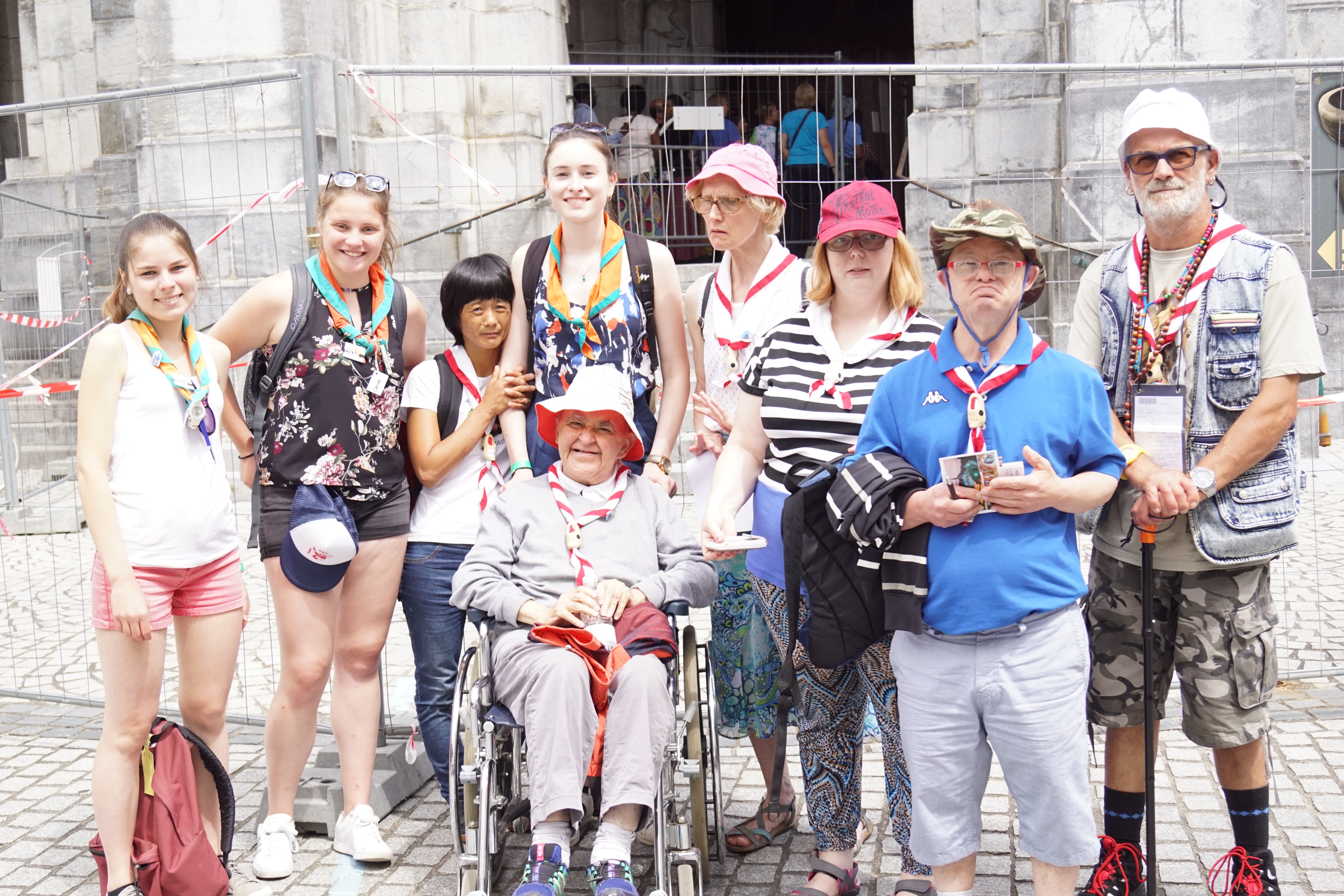 Le 20 juillet, au matin, nous avons, pour la 1ère fois de la semaine, mis un pied dans les Sanctuaires et avons fait une activité avec le groupe NDJ (Notre Dame de Joie). Les NDJ sont des personnes porteuses d’un handicap faible ou fort. Ce sont des personnes qui ont toujours les bras grands ouverts pour t’accueillir, te montrer des choses ou encore te faire comprendre des choses sur la vie. C’est une activité qu’on apprécie plus particulièrement car on peut y avoir vraiment un contact direct avec l’autre. Après-midi, nous avons fait un jeu sur la Belgique avec les juniors. Au soir, on nous a proposé une veillée Team-Building. C’était une super veillée !