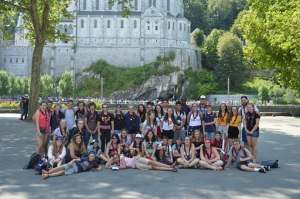 Le 18 juillet, au matin, plusieurs rassemblements de cars étaient prévus pour pouvoir emmener tout le monde à la gare de Tourcoing. C’est alors remplis d’impatience et d’excitation (ou de questionnement pour les nouveaux) que les jeunes et les ados ont embarqué dans le TGV en direction de Lourdes. Arrivés sur place, soulagés d’être enfin sortis du train, nous avons eu droit à un bon premier repas au village des jeunes. Ensuite, nous nous sommes installés dans nos dortoirs respectifs et avons participé à une veillée de folie : la veillée Monopoly.