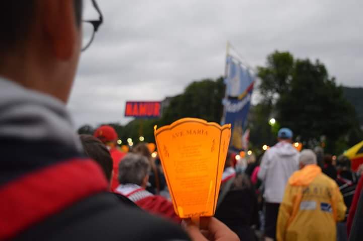 Le 22 juillet, au matin, 2 choses nous étaient proposées : les bains de Lourdes ou faire des chapelets. Les 16+, eux, ont accompagné les jeunes toute la matinée pour voir un peu comment ils fonctionnaient. Après-midi, nous avons participé à la célébration commune. C’est un moment qui rassemble jeunes, ados, adultes, juniors et NDJ. Souvent les animateurs des jeunes et des ados font un petit sketch pour introduire les différentes activités qu’il y aura tout au long de l’après-midi. C’est un chouette moment de convivialité et de partage. Ce jour-là, au soir, une soirée spirituelle sur les thèmes de la famille et de l’amitié nous a été proposée. C’est aussi une soirée qui est assez forte en émotions et qui fait remonter beaucoup de choses à la surface. Cette veillée se fait en groupe de partage, groupe que nous avons depuis le début de la semaine et qui sert à pouvoir se libérer en petit comité. Nous avons eu aussi la chance de pouvoir regarder la procession aux flambeaux, marche et prières qui se font dans les Sanctuaires.