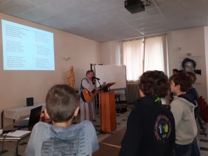 Après l’eucharistie, un apéritif convivial a rassemblé ceux qui le souhaitaient dans le fond de l’église. Les jeunes animateurs se sont retrouvés pour partager un repas ; lors du dessert, les différents animateurs ont reçu par surprise un petit gâteau au-dessus duquel était placé … une étiquette avec leur nombre d’années d’animation … Et on peut dire qu’ils sont fidèles à animer les retraites depuis leur confirmation ! Bravo à eux ! On compte toujours sur vous ! 🙂 Merci à toutes les personnes qui ont permis le bon déroulement de cette fête ! 🙂 V.P.