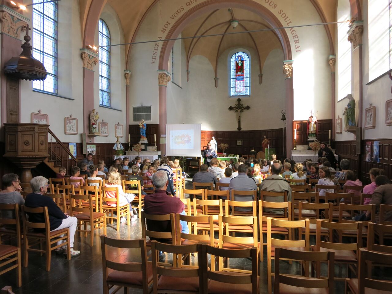Merci à l’abbé Coibion pour l’autorisation de publication des quelques mots de son homélie, à Etienne Wanlin pour les photos, Mélanie pour la photo des jeunes animateurs « jubilaires ».