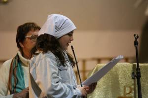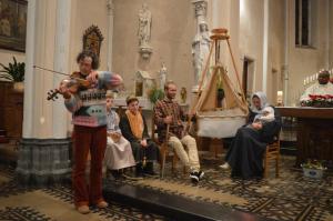 Trois femmes, habitant à l’écart, préparent un Noël traditionnel quand apparaît un couple d’étrangers. Elle est épuisée, va bientôt accoucher. Son mari cherche une grange, ce sont des réfugiés syriens : Fatima et José. Les braves femmes rassurées voient un signe, un clin d’oeil de celui qui est parti depuis peu. Elles accueillent le couple qui s’installe chez l’une d’elles avec bonheur. Ce sera leur plus beau Noël. La crèche vivante a réuni tous les enfants qui nous ont fait revivre la magie de Noël. Merci à tous ! Annie