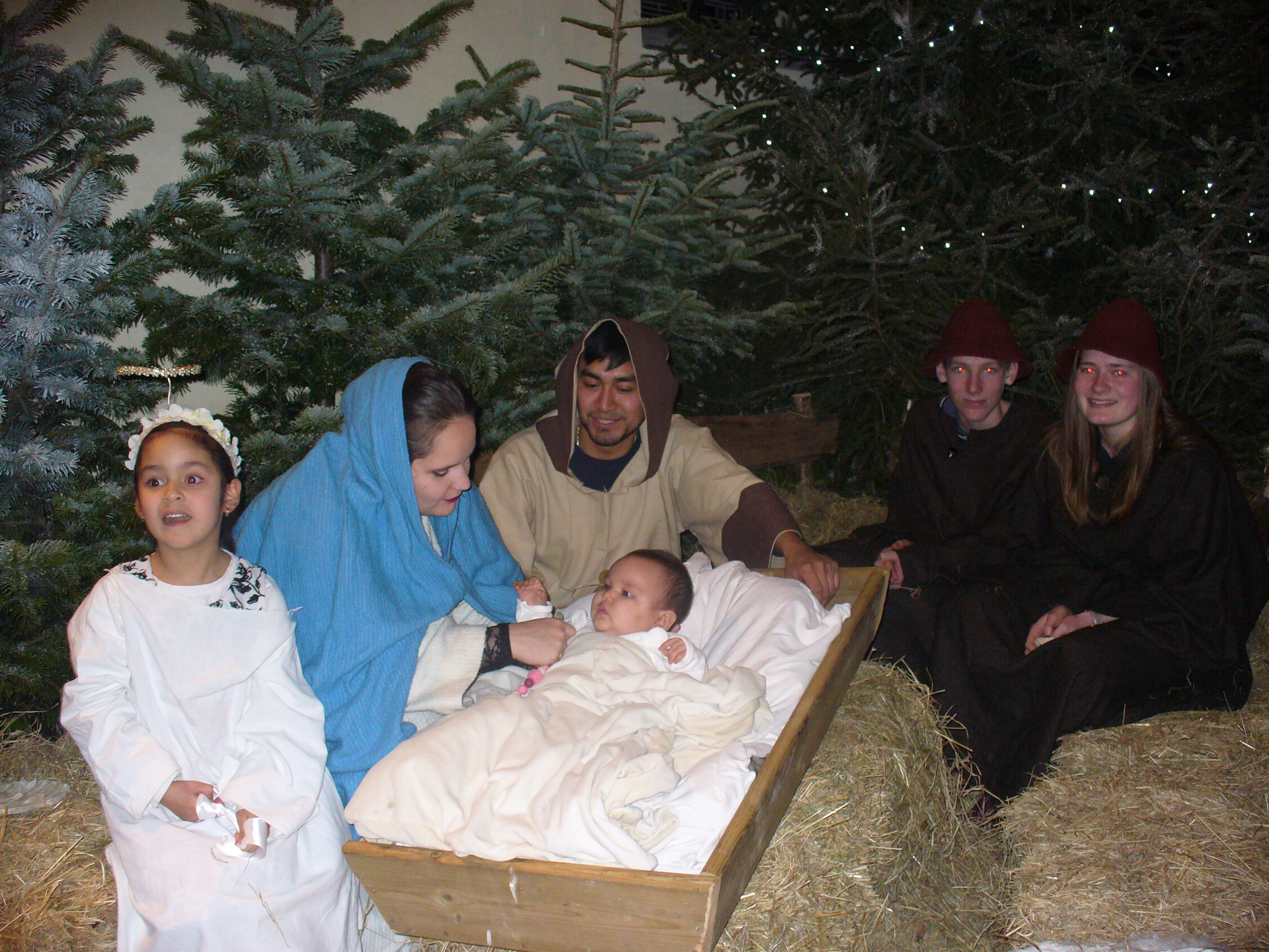 Trois femmes, habitant à l’écart, préparent un Noël traditionnel quand apparaît un couple d’étrangers. Elle est épuisée, va bientôt accoucher. Son mari cherche une grange, ce sont des réfugiés syriens : Fatima et José. Les braves femmes rassurées voient un signe, un clin d’oeil de celui qui est parti depuis peu. Elles accueillent le couple qui s’installe chez l’une d’elles avec bonheur. Ce sera leur plus beau Noël. La crèche vivante a réuni tous les enfants qui nous ont fait revivre la magie de Noël. Merci à tous ! Annie