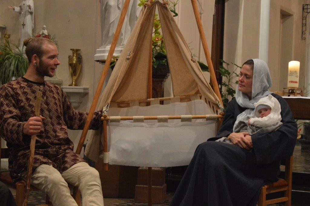 C’est à minuit que l’église de Louette-Saint-Denis a eu la joie de fêter la naissance de l’Enfant Jésus au cours de la messe célébrée par l’Abbé Félicien et animée par la chorale du village. Un conte a été interprété par des ados de bonne volonté et, de nombreux enfants, aux yeux embrumés de sommeil, ont participé à la crèche vivante autour d’un bébé adorable bercé par ses parents. Cette célébration s’est prolongée avec la dégustation d’un cougnou et d’un vin chaud. Un grand merci à tous ! Rita, Yvette, Anne-Marie, Marie-Christine.