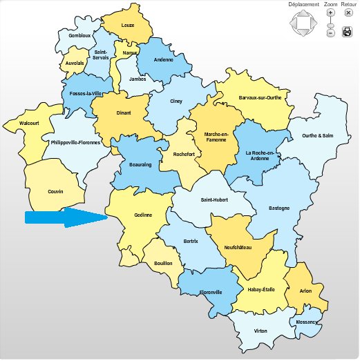 Voici la carte du diocèse de Namur-Luxembourg qui vous indique où se trouve le doyenné de Gedinne :